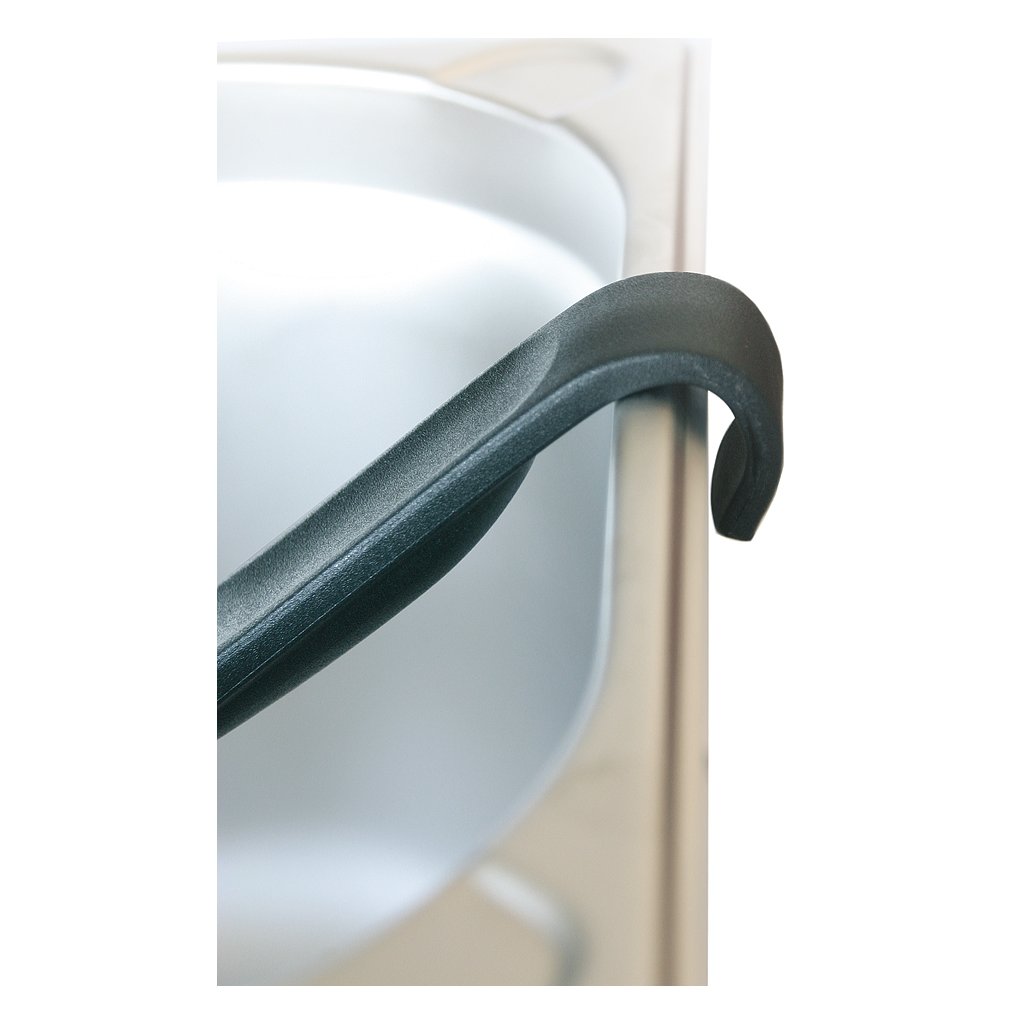 Naběračka na polévku z nerezové oceli. Černý, ergonomický úchyt z polypropylenu má teplotní odolnost do 120° Celsia. Vhodná do myčky. Plocha 90x90 mmDoplňkové parametry
