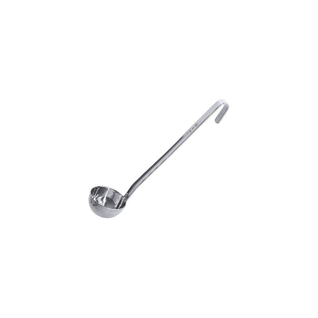 Naběračka monoblok vyrobená z nerezové oceli s vyrytou informaci o objemu a průměru na úchytu.Doplňkové parametry