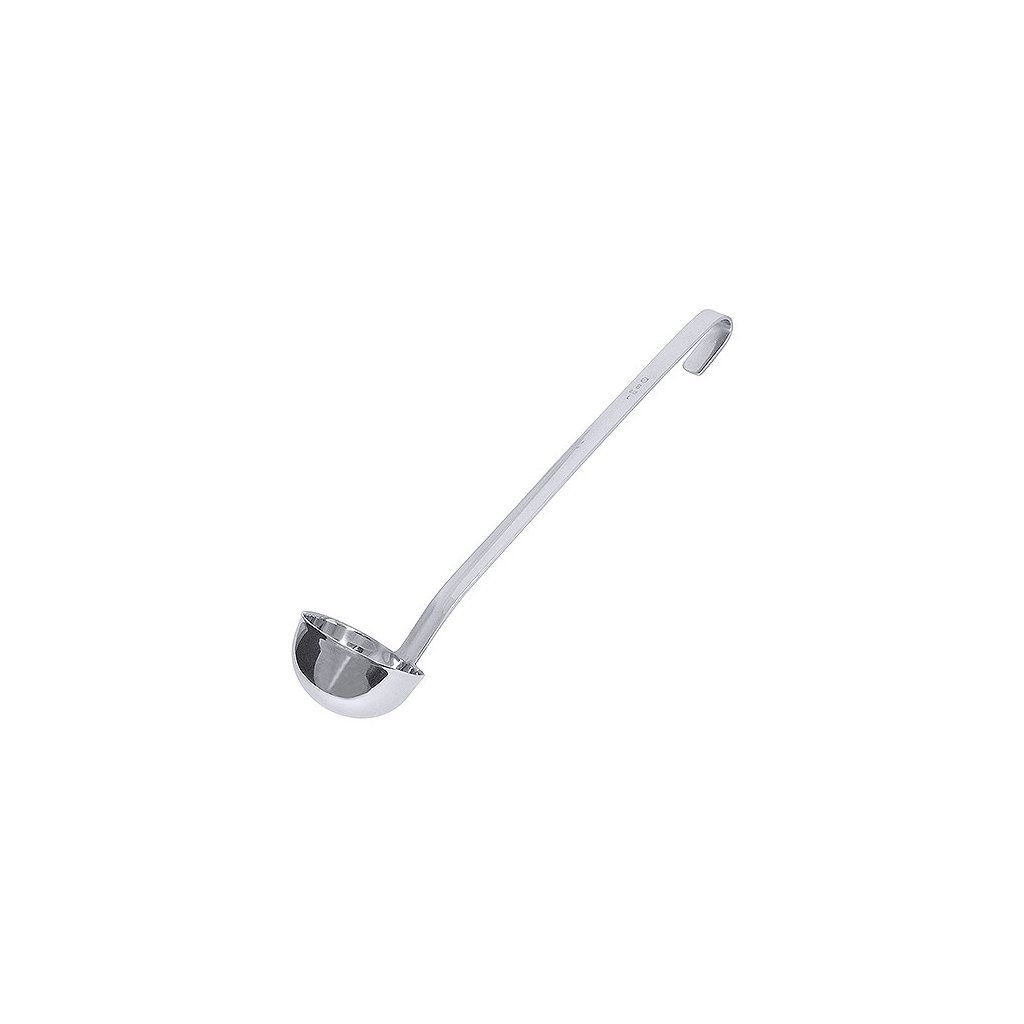 Naběračka monoblok vyrobená z leštěné nerezové oceli s vyrytou informaci o objemu a průměru na dlouhém úchytu.Doplňkové parametry