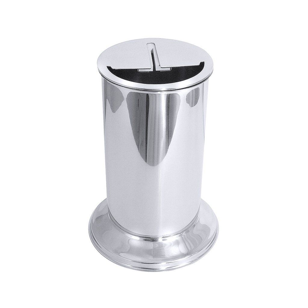 Nádoba na podstavci pro čištění nožů při krájení dortů. Součásti je nádoba z leštěné nerezové oceli, nástavec s gumou pro osušení nože s teplotní odolnosti do 80° Celsia a vnitřní nádoby vyrobené z POM pro ochranu čepele během oplachování.Doplňkové parametry