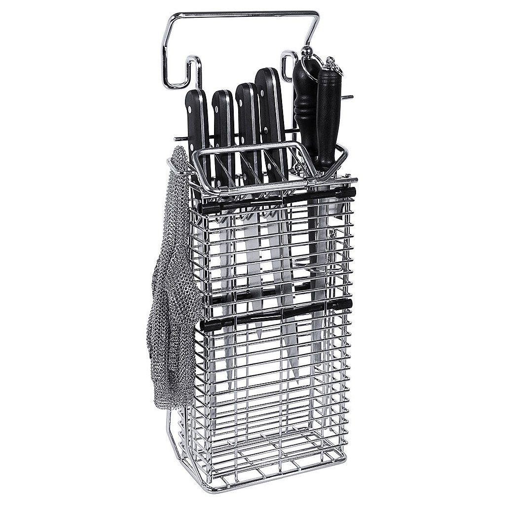 Stojan na skladování, transport nebo mytí 4 nožů o délce do 270 mm, dvou brousku a ocelové rukavice je vyrobená z nerezové oceli. Součásti stojanu je ochrana na ostří nožů.Doplňkové parametry
