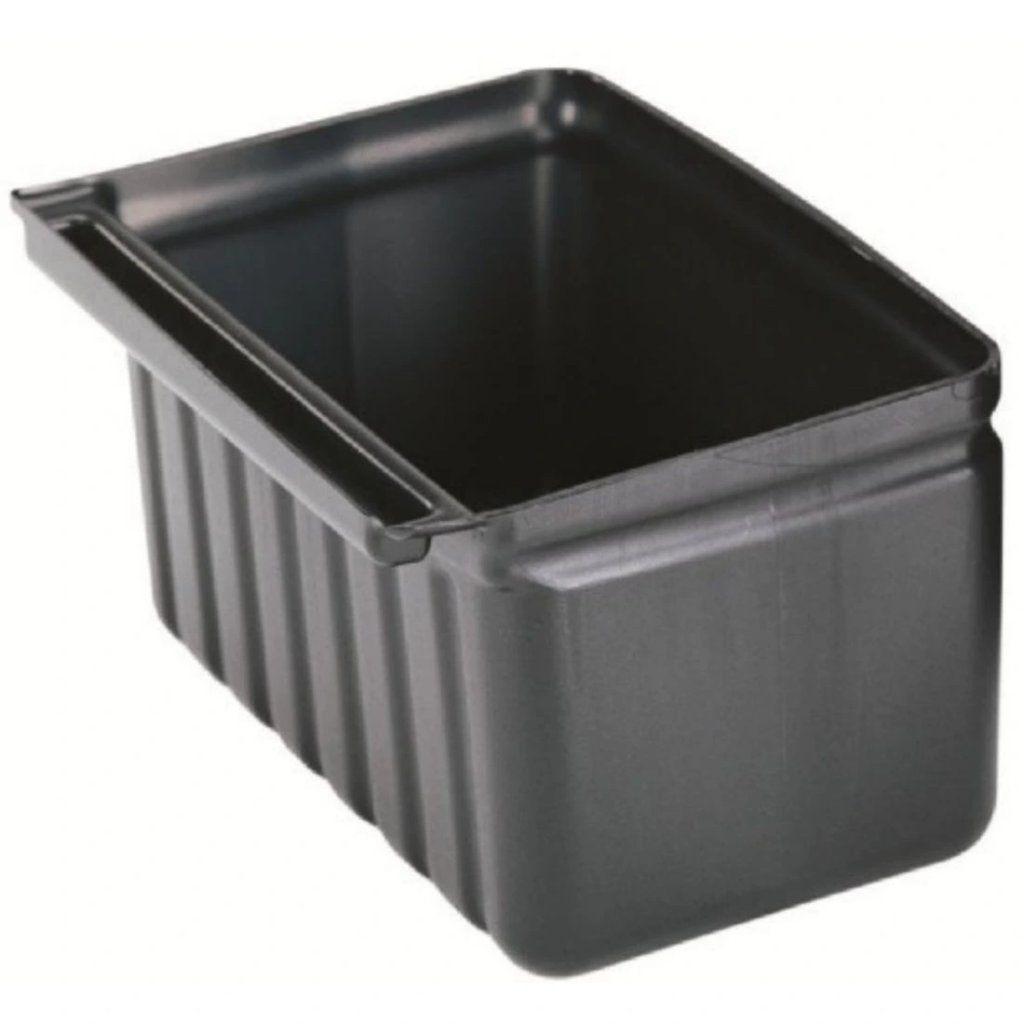 Tento parádní černý držák slouží k umístění příborů. Objem 9,5 litrů připevníte k užitkovým vozíkům R-BC331KD480 a R-BC340KD480, abyste pohodlně přepravovali použité příbory po celém vašem podniku. Vyrábí se z odolného polyetylenu.Nádoba na příbory