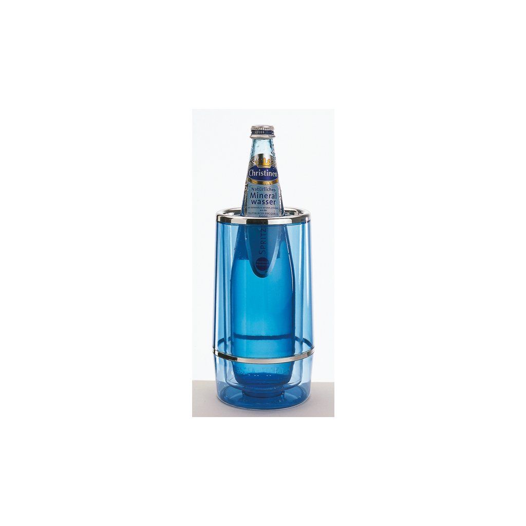 Termoizolační láhev s dvojitou stěnou. Udržuje nizkou teplotu po dlouhou dobu. Vyrobeno z modrého akrylu. Ozdobné, chromované okraje. Průměr 100 mm. Není vhodná do myčky.Doplňkové parametry