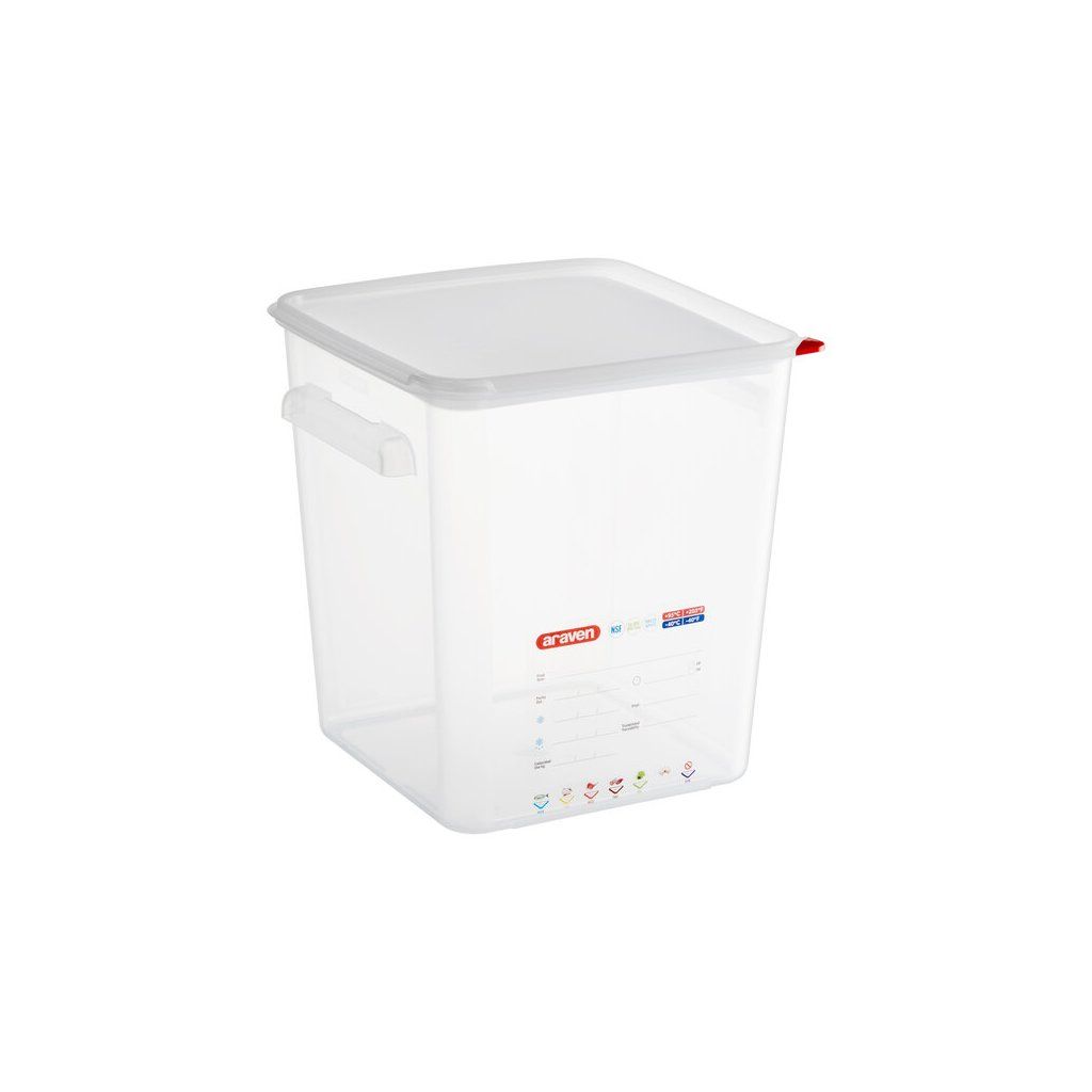 • Čtvercové nádoby optimalizují úložný prostor.• Boční úchyty usnadňují přenášení a přepravu.• Vzduchotěsné víko chrání potraviny.• Víko z LDPE, flexibilního materiálu.Doplňkové parametry
