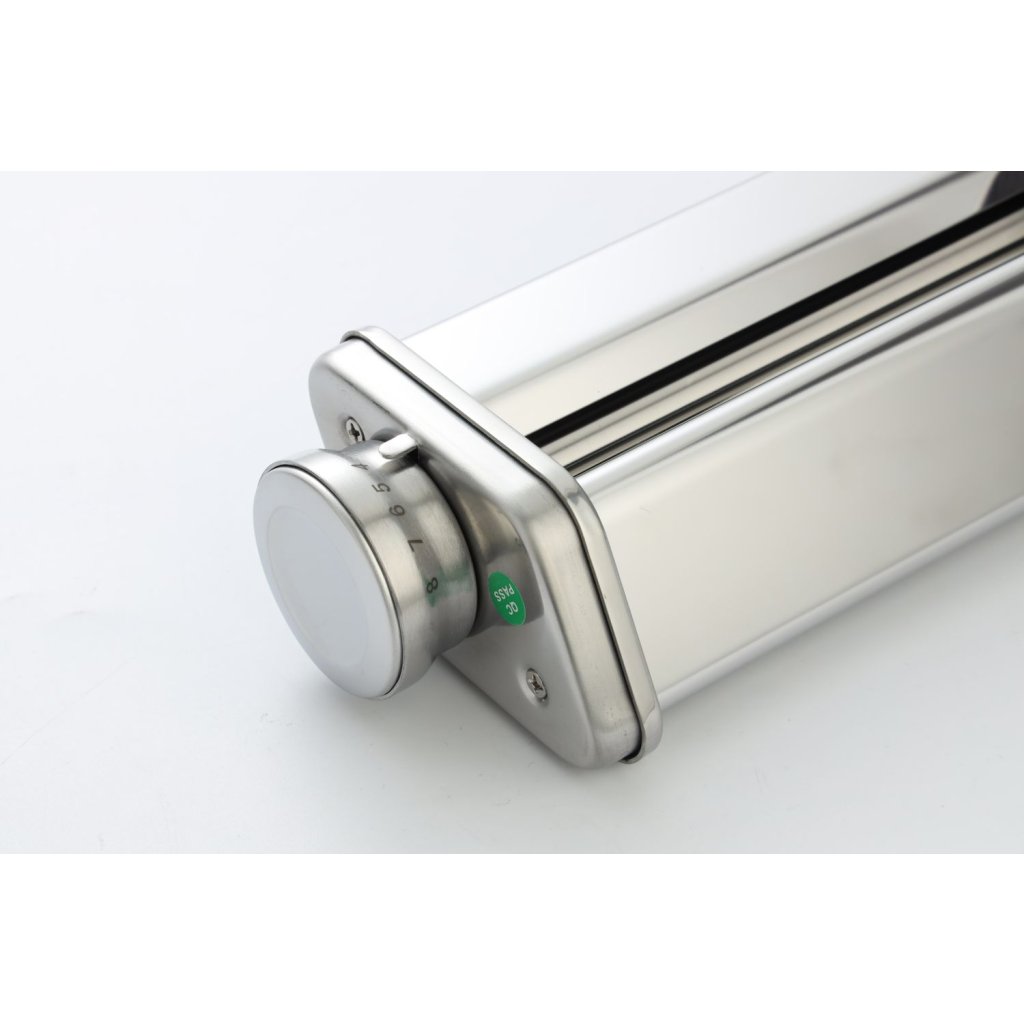 Pouzdro, válečky a řezací válečky jsou vyrobeny z nerezové oceli. Přílohy jsou součástí sady: 1. Váleček na těstoviny: 140 mm široký a 8 mm silný, nastavitelný v rozmezí od cca 0,2 mm do 2 mm. 2. Kráječ na špagety: tloušťka 1,6 mm. 3. Kráječ na tagliatelle: šířka 6,3 mm. Nástavce jsou kompatibilní pouze s planetárním mixérem HENDI Blackbolt (kód: 221570).Buďte první, kdo napíše příspěvek k této položce.