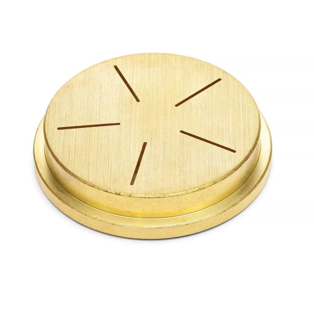 Pro použití v profesionálním stravováníTip na přípravu širokých těstovinových páskůVyrobeno z mosazi5 otvorů 16x1 mmHodí se pro zařízení na výrobu těstovin s kódy: 201596 i 201619Doplňkové parametry