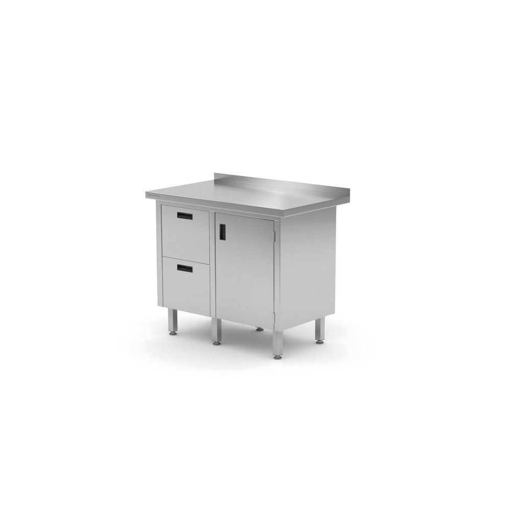 Nástěnný stůl Technica je výjimečně funkční zařízení, které je navrženo tak, aby maximalizovalo pracovní a úložný prostor v profesionální kuchyni. Je vyrobena výhradně z vysoce kvalitní nerezové oceli, což zaručuje výjimečnou trvanlivost, odolnost proti korozi a snadné udržování dokonalé hygieny. Stůl kombinuje prostornou pracovní desku se dvěma objemnými zásuvkami umístěnými na levé straně a praktickou skříňkou s výklopnými dvířky, která umožňuje efektivní uložení jak drobného příslušenství, tak i většího vybavení či zásob.