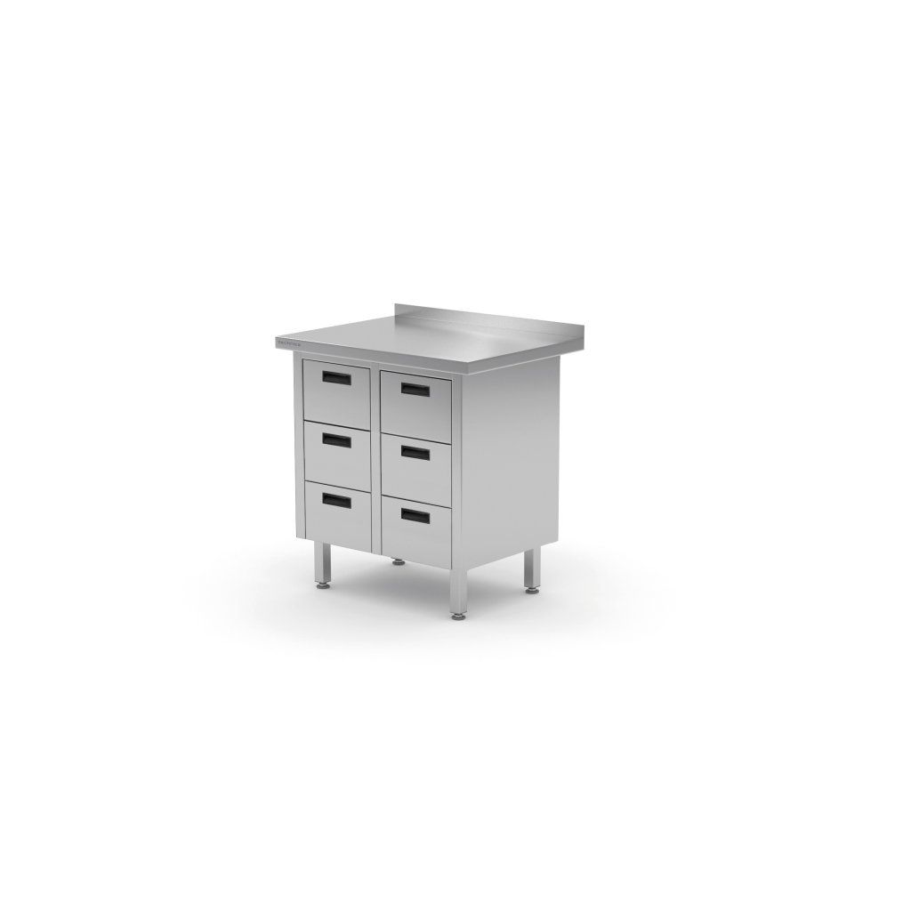 Nástěnný stůl Technica je ideálním řešením pro profesionální kuchyně, které vyžadují optimální organizaci a maximální využití pracovního prostoru. Stůl je vyroben výhradně z vysoce kvalitní nerezové oceli v elegantní barvě inox a zaručuje výjimečnou trvanlivost, odolnost proti korozi a snadné udržování dokonalé hygieny. Jeho hlavní předností je integrovaný blok šesti objemných zásuvek, které poskytují dostatek úložného prostoru pro nářadí, příslušenství a suroviny, pomáhají udržovat bezvadný pořádek a zvyšují efektivitu práce.
