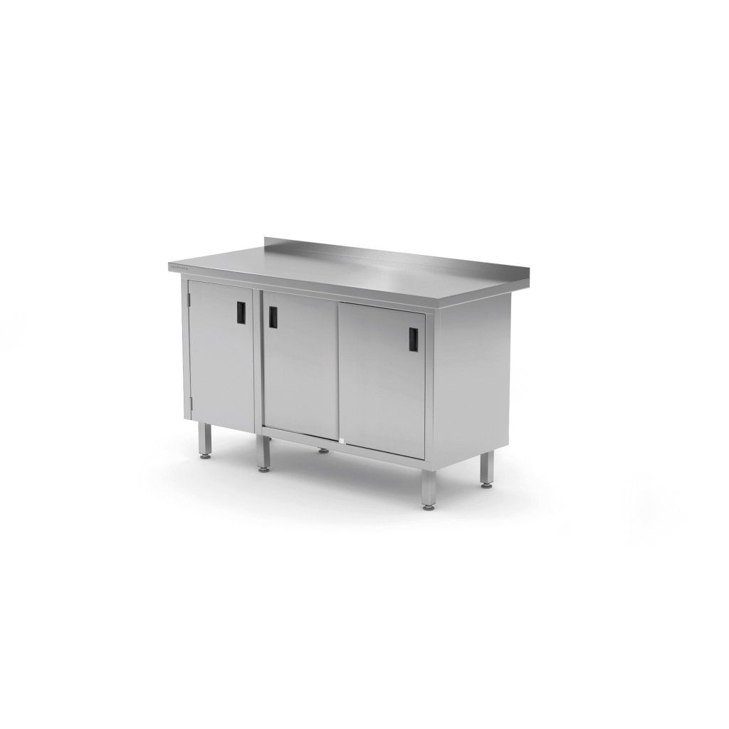 Nástěnný stůl Technica je výjimečně funkční a promyšlený kus nábytku, který je navržen tak, aby maximalizoval pracovní a úložný prostor v profesionální kuchyni. Stůl je celý vyroben z vysoce kvalitní nerezové oceli v elegantní barvě inox a zaručuje výjimečnou trvanlivost, odolnost proti korozi a snadné čištění. Kombinace skříňky s výklopnými dveřmi na levé straně a skříňky s posuvnými dveřmi na pravé straně umožňuje flexibilní správu prostoru. Posuvné dveře jsou ideální pro úzké průchody, zatímco výklopné dveře umožňují široký přístup do vnitřku skříňky.