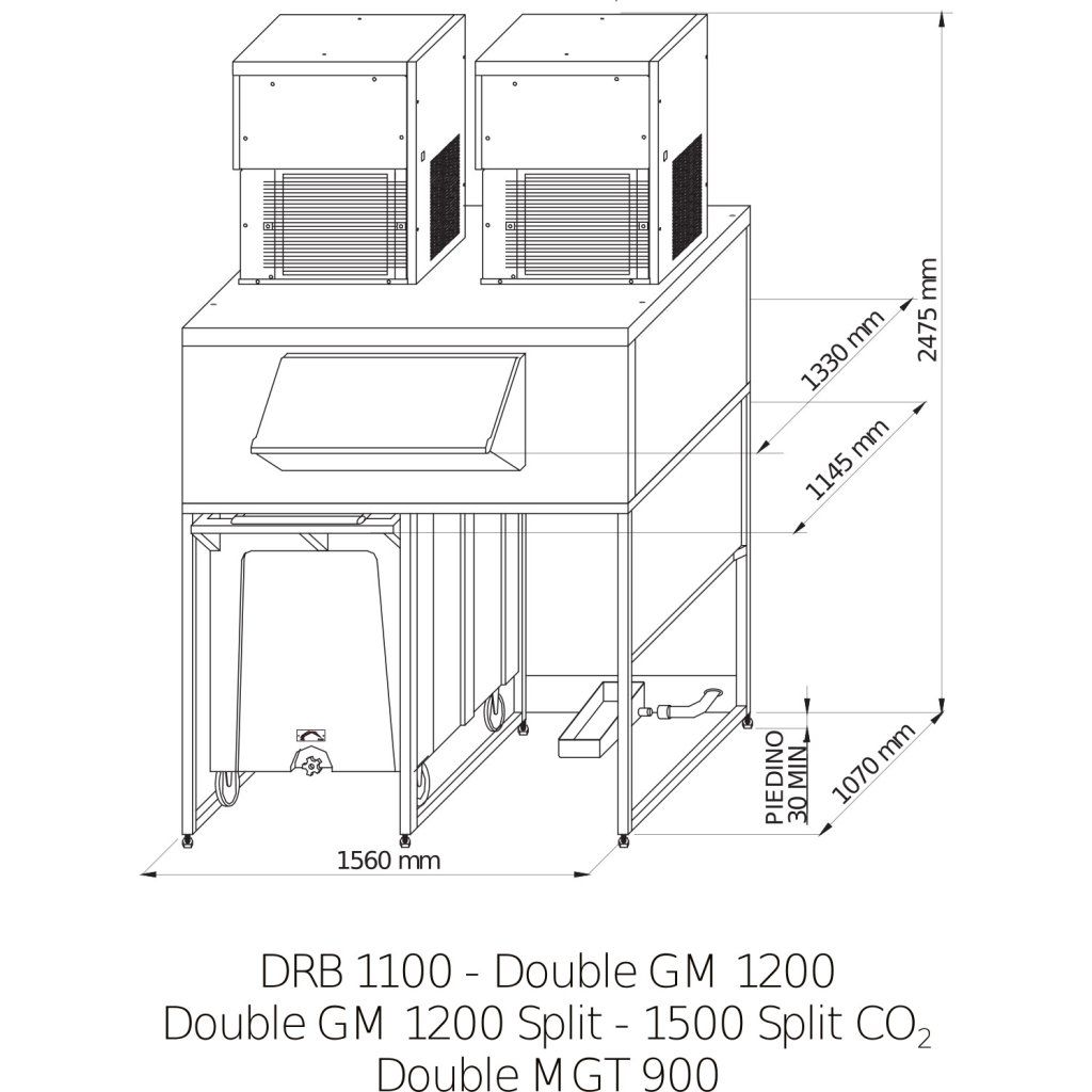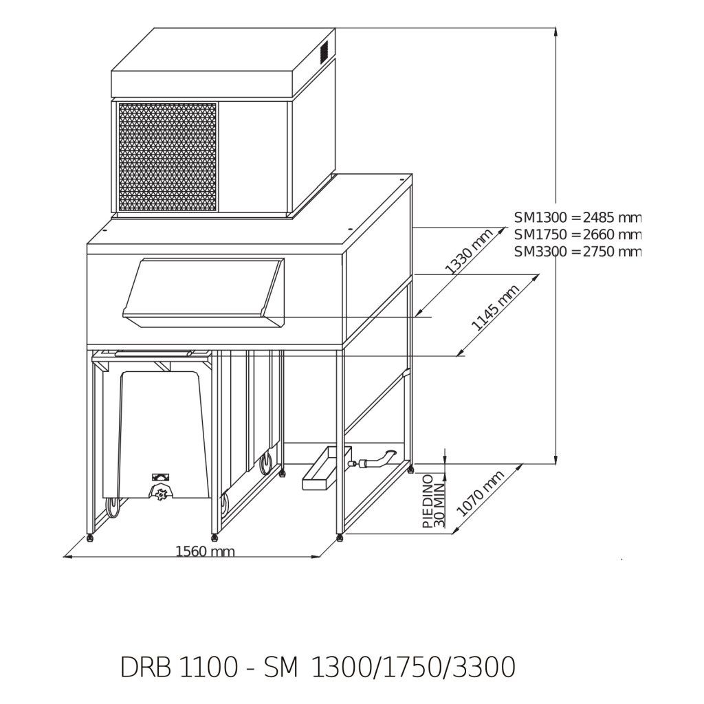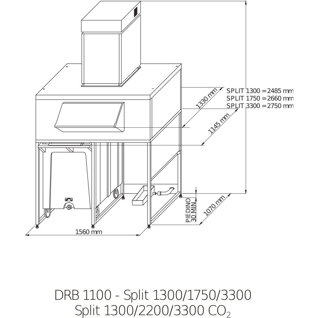 - Vysoce kvalitní nádoba na led- Nastavitelné nohy (100-160 mm)