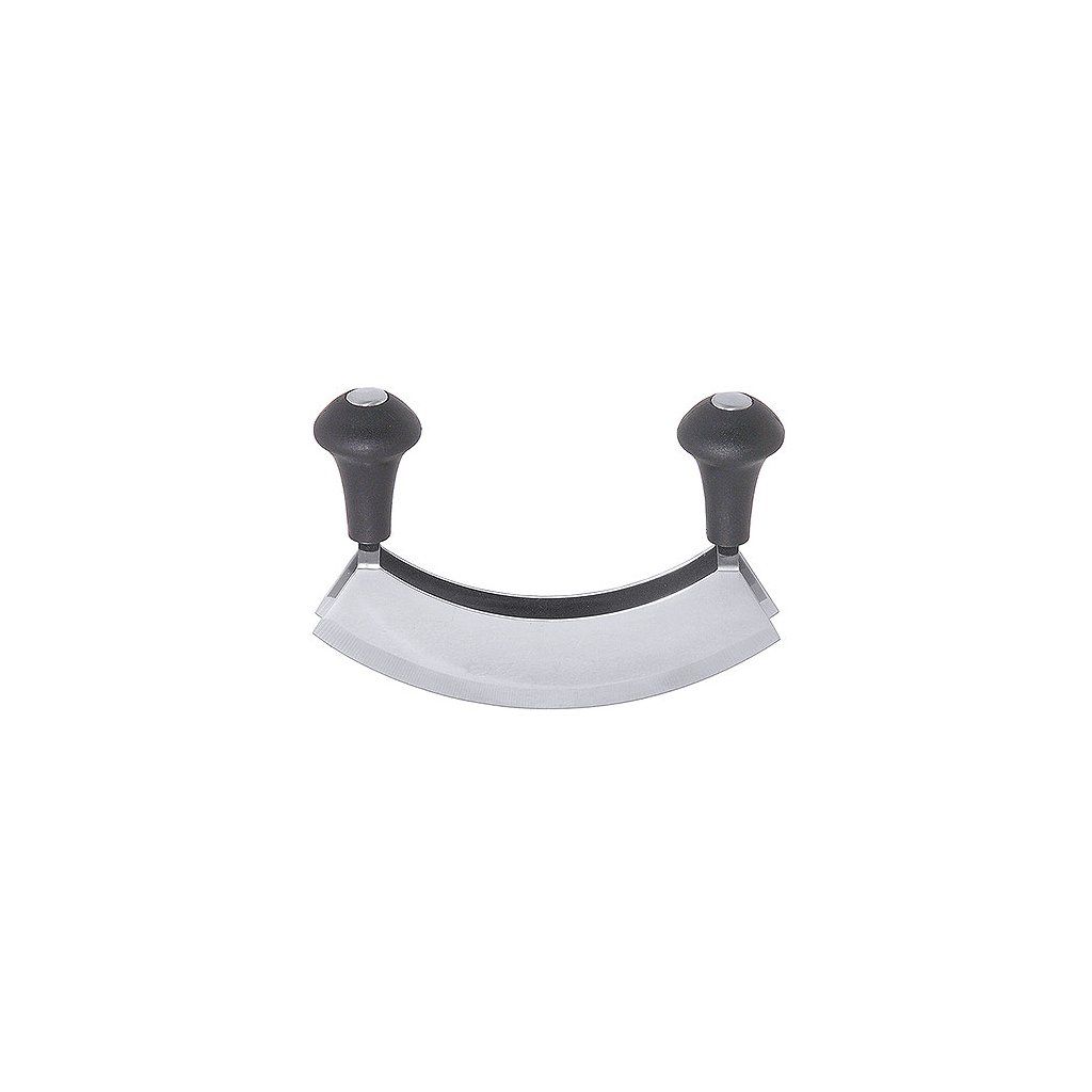 Kolébkový nůž s dvojitou čepeli z nerezové oceli 18/0 a černým úchytem z polyethylénu.Doplňkové parametry
