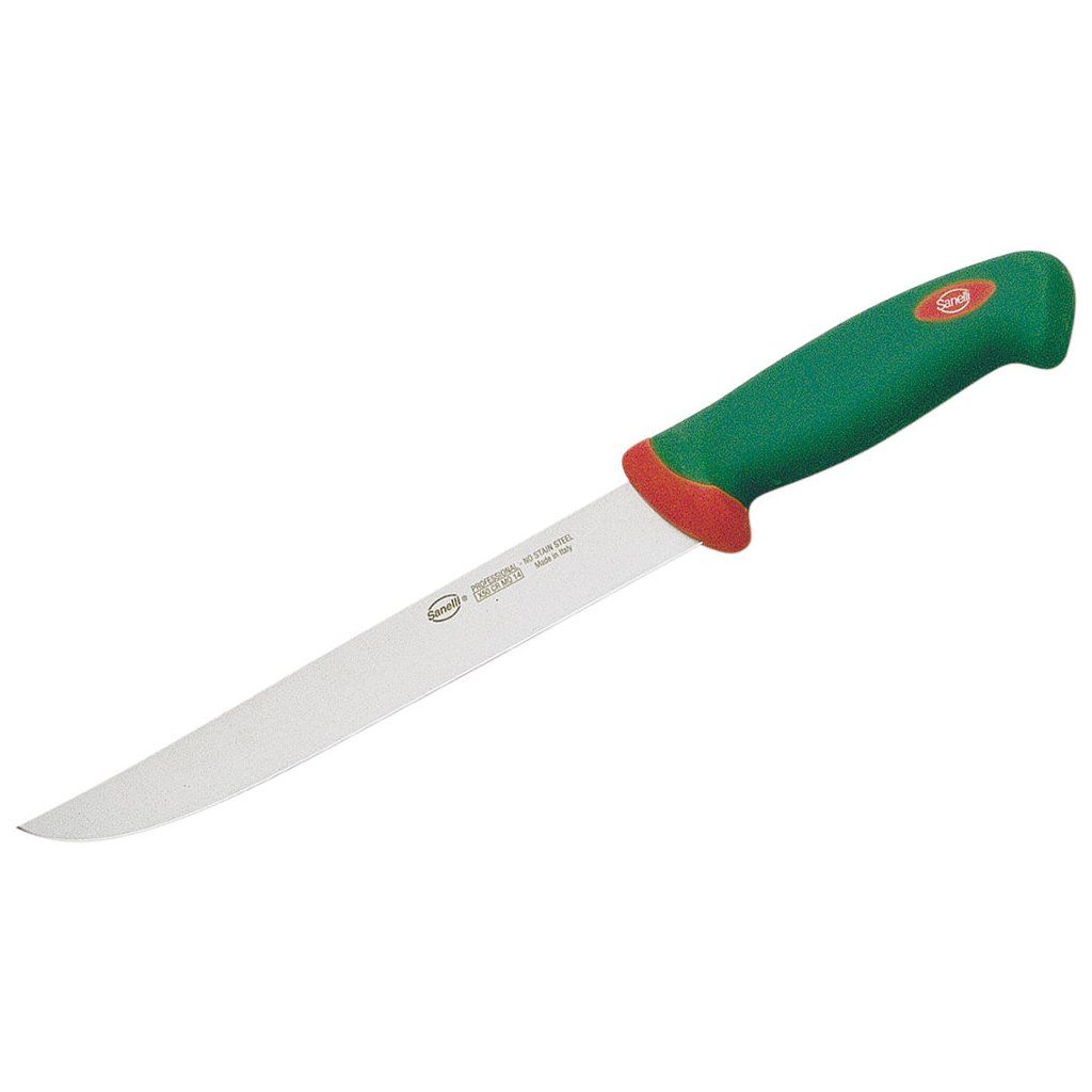 Rukojeť nožů Sanelli je vyrobena z dvou druhů plastů, tvrdého (červený), který zajišťuje stabilní osazení čepele a měkkého (zelený), se zvláštní strukturou, který zajišťuje pohodlné a pevné uchopení, minimalizuje možnost vyklouznutí nože. Čepel byla navržena pro profesionální použití: chrom-molybdenová ocel, vhodná tvrdost (54-56 HRC), dobrá flexibilita, dobré řezné vlastnosti, odolnost vůči zlomení. Lze mýt v myčce.Doplňkové parametry
