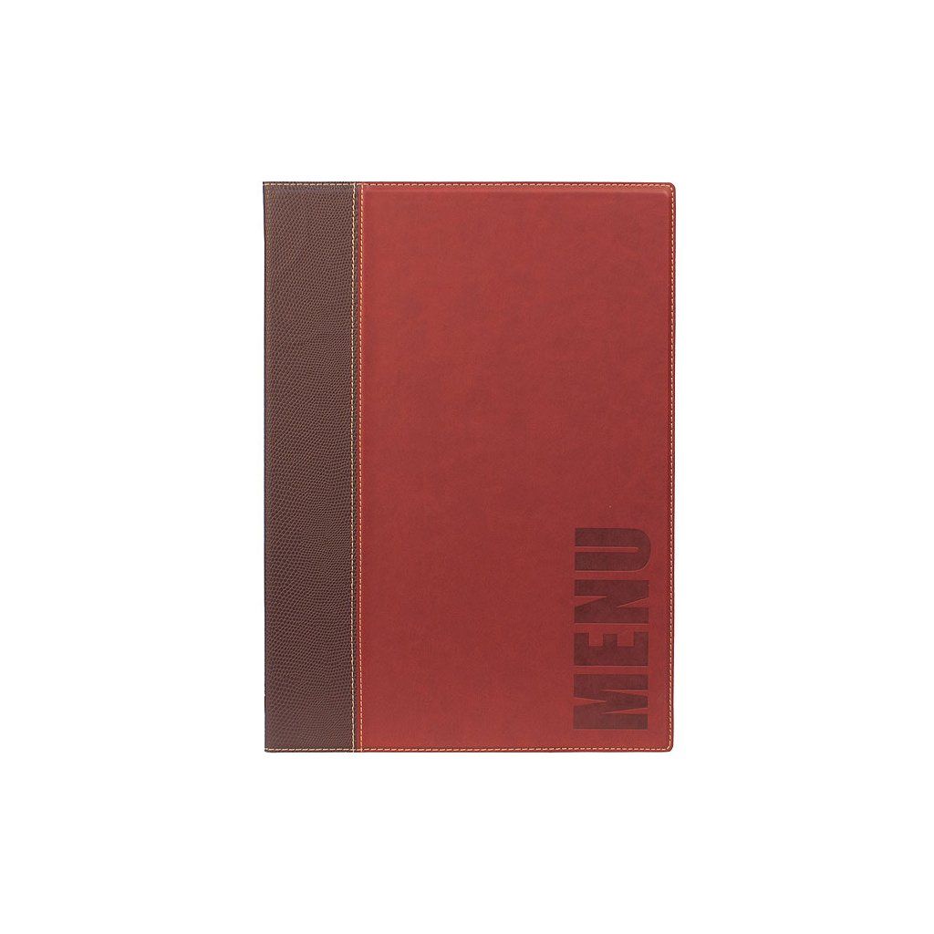 Obal na jídelní lístek s nápisem "Menu" ve formátu A4 je vyrobený z odolného materiálu, připomínajícího kůži. Jednoduchý na čištění. Součásti plastová vložka.Doplňkové parametry