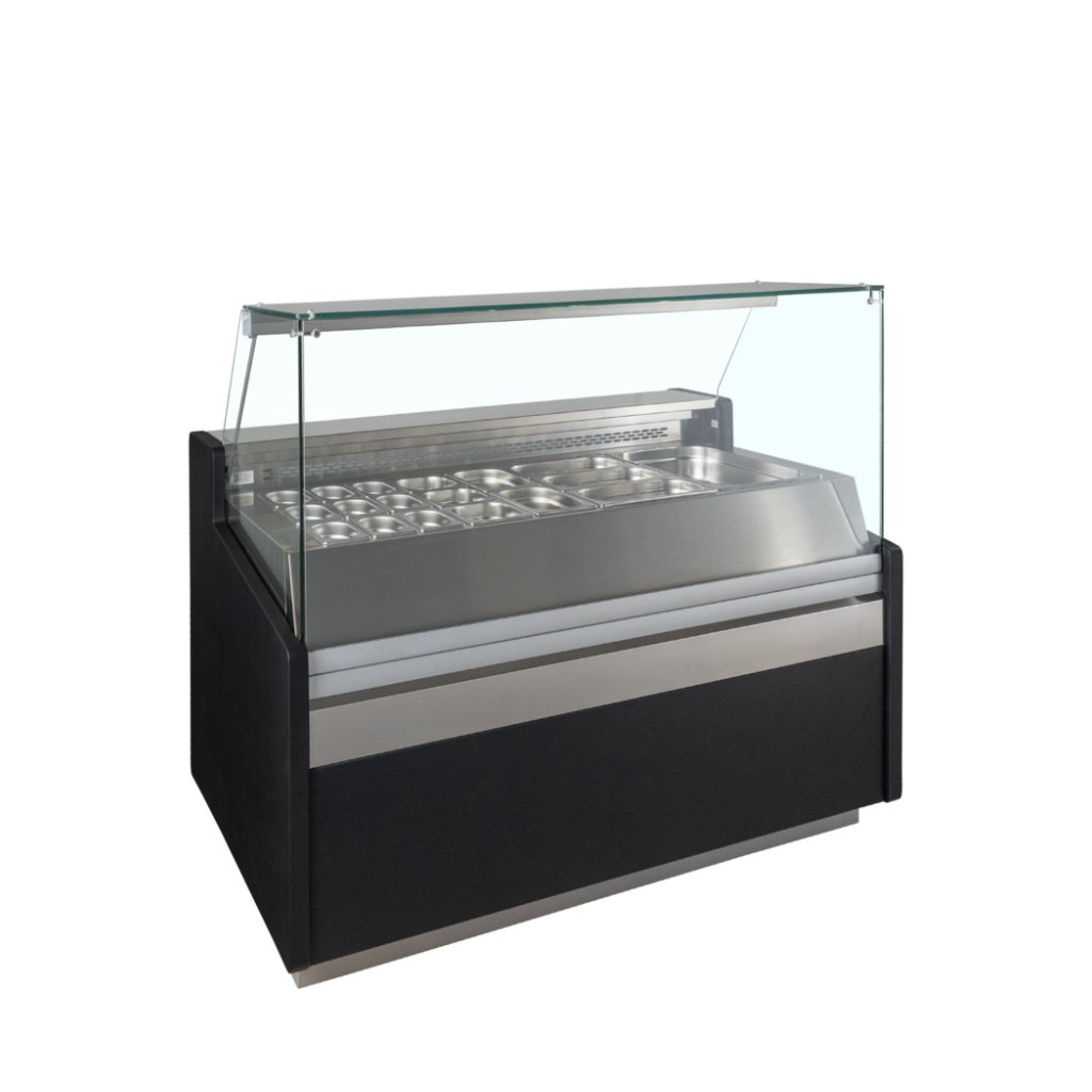 Obslužný pult s ventilací s normovanými gastro rozměry.Seznamte se s obslužným pultem SPID – dokonalým chladícím řešením pro vaše potřeby týkající se vystavování potravin. Tento stylový pult je vybaven účinným ventilačním chladicím systémem, který rovnoměrně cirkuluje chladný vzduch po celé skříni. Je navržen tak, aby udržoval ideální teplotu vašich výrobků a zároveň nabízel snadný přístup. Zaujme vizuálně i funkcemi a je ideální pro prodejny sendvičů a lahůdek a supermarkety, kde vám umožní lákavě vystavit vaši nabídku. Má plochou skleněnou konstrukci pro zachování dobré hygieny a přední sklo lze vyklopit dopředu pro snadné čištění. Tento obslužný pult je vhodný pro použití gastronádob (nejsou součástí dodávky).Doplňkové parametry