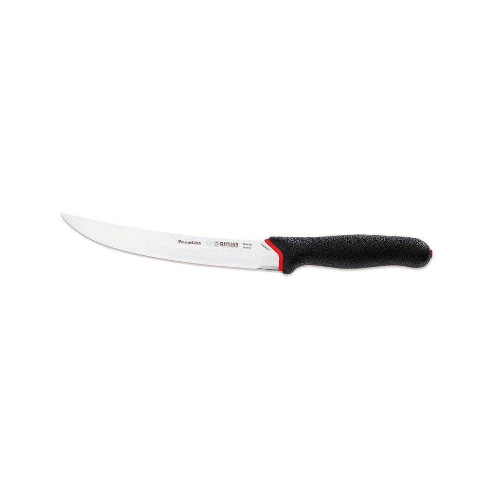Aby nože řady PrimeLine měly zvláštní vlastnosti, vzorem byla příroda - ergonomie, hygiena, ostrost a neklouzavost. Díky různým tvarům a délkám čepelí, pružnému nebo tvrdému ostří, krátkému nebo dlouhému ochrannému nosu u rukojeti je řada PrimeLine ideální pro jakýkoli druh práce, ať už v gastronomii nebo při zpracování masa a potravin. Měkký přilnavý povrch s tvrdým plastovým jádrem zaručuje stabilní a přesnou práci. Vyvážené proporce nože PrimeLine jsou rozhodující pro dosažení dokonalé rovnováhy mezi čepelí a rukojetí, takže krájení probíhá bez námahy a nezpůsobuje únavu rukou. Díky optimálně tvarované a zaoblené rukojeti s ochranným nosem nože PrimeLine dokonale padnou do ruky a šetří šlachy a klouby. Na dotek příjemný měkký plast pouzdra rukojeti byl ergonomicky tvarován a dokonale se přizpůsobí ruce. Textura povrchu zajišťuje bezpečné uchopení i v mokrých rukou a poskytuje optimální vedení řezu. Riziko vyklouznutí je výrazně sníženo, čímž se předchází zraněním. Při výrobě PrimeLine se používají pouze pečlivě zpracované materiály nejvyšší kvality. Čím rovnoměrnější je kalení, tím větší je odolnost čepele proti opotřebení. Z tohoto důvodu se používá nejmodernější technologie na světě: vakuové tepelné zpracování. Dokonalé broušení a závěrečné ruční ostření zaručují dlouhou životnost a zajišťují mimořádnou ostrost čepele. Antibakteriální účinek stříbra je znám již po staletí. Sanitární rukojeti potažené stříbrem spolehlivě a trvale snižují šíření bakterií a riziko kontaminace. Sanitizované stříbro zaručuje optimální hygienu při zpracování masa a potravin, splňuje přísné požadavky nařízení o potravinách a spotřebním zboží, je antialergické a dermatologicky testované.Buďte první, kdo napíše příspěvek k této položce.