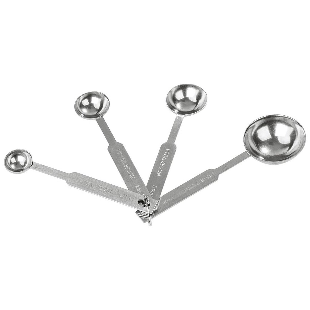 Měrka z nerezové oceli. V soupravě 4 velikosti:1/4 lžičky(1,25 ml)1/2lžičky (2,5 ml)1lžička (5 ml)1 lžice (15 ml)Obsah viditelný na úchytech.Doplňkové parametry