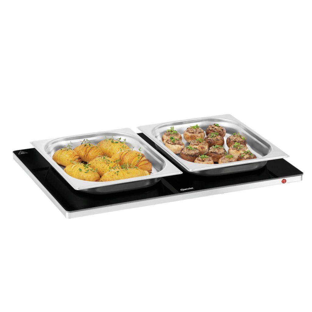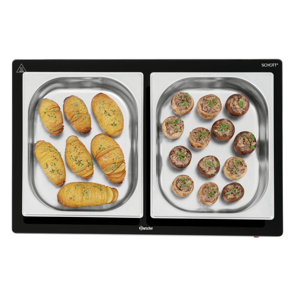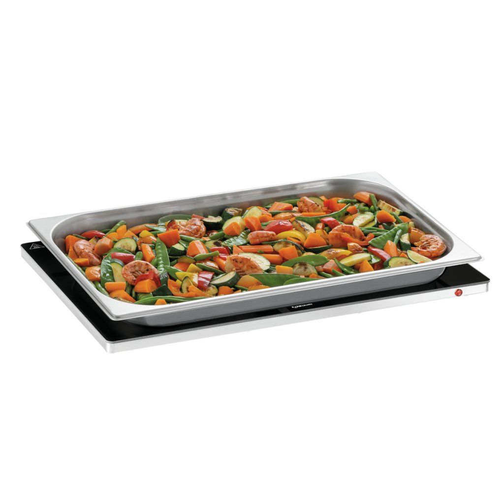 Mimořádně plochá ohřevná deska je ideální pro bufety, catering i live cooking. Pokrmy udržuje v teple a zároveň je elegantně prezentuje před servírováním. Perfektně se hodí pro nádoby ve formátu 1/1 GN.