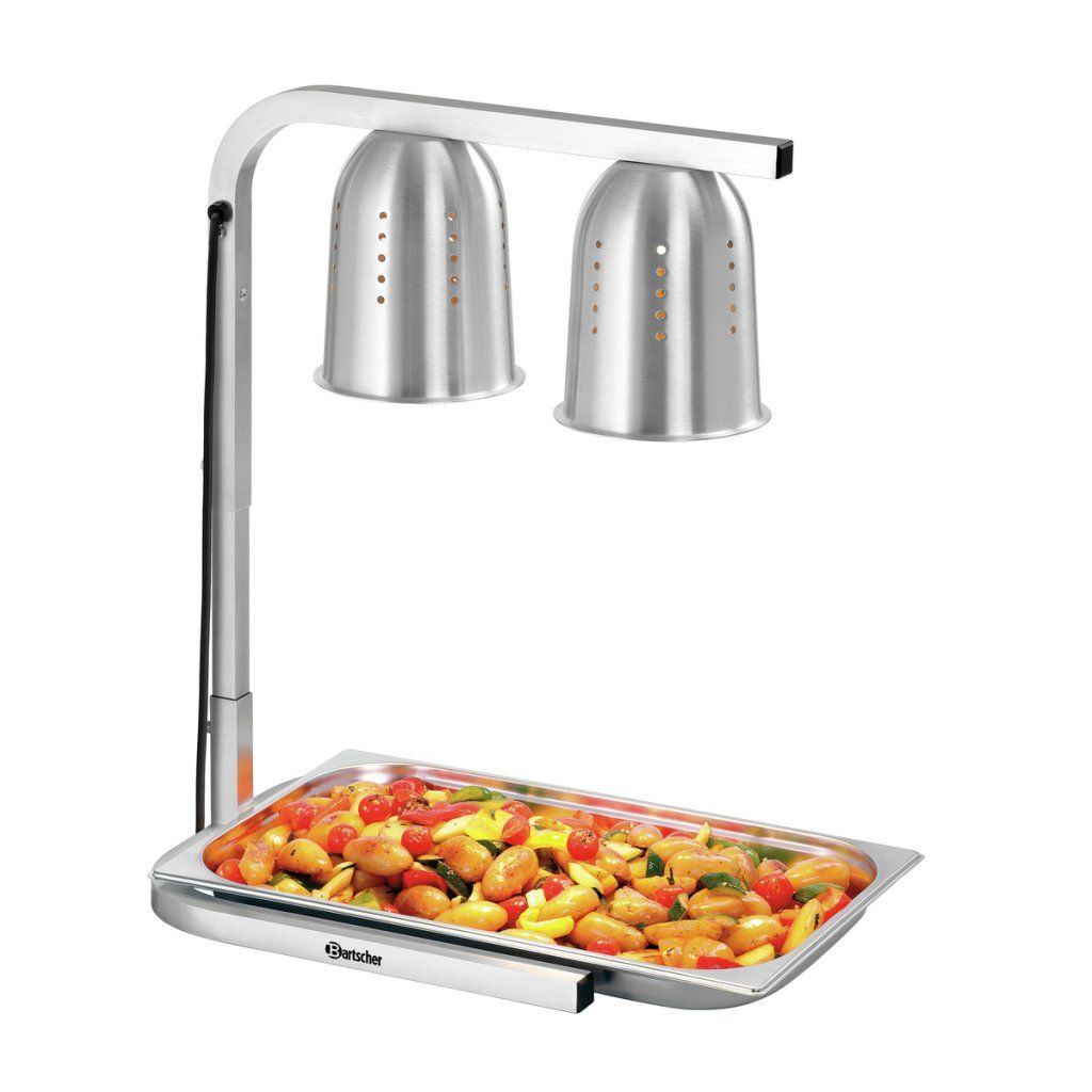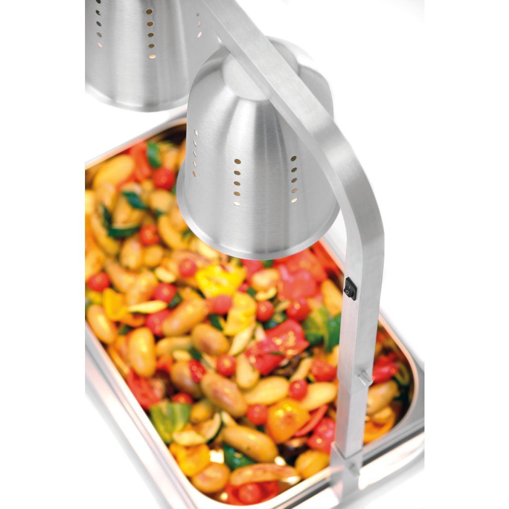 V bufetu, cateringu nebo jídelně zajišťují dvě ohřevné lampy s odvětrávanými hliníkovými reflektory přesné předávání tepla. Pokrmy tak zůstávají déle v ideální servírovací teplotě a připravené k výdeji.