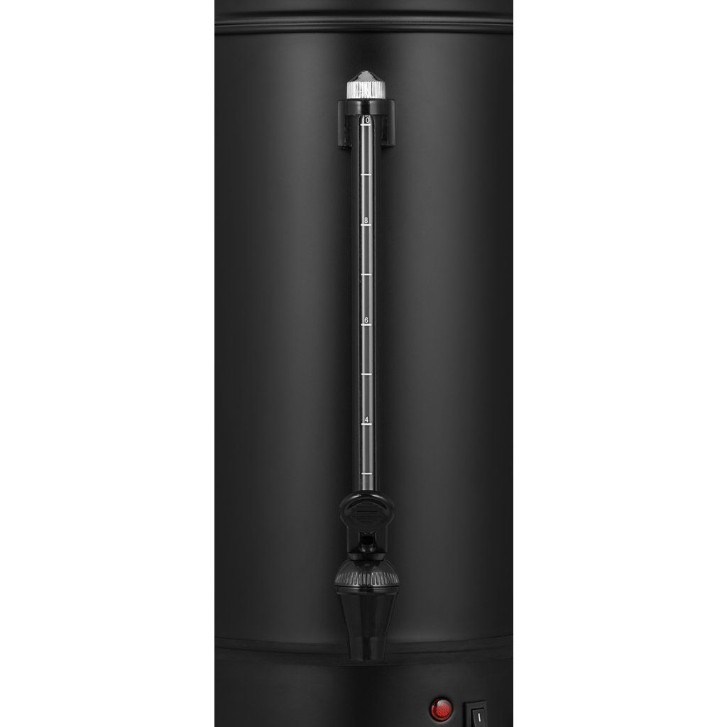 Výdejník horké vody v černém provedení umožňuje ohřev až 10 litrů vody a její průběžné udržování v teple. Je ideální pro samoobslužné zóny, akce i venkovní použití, kde oceníte moderní vzhled i jednoduchou obsluhu.