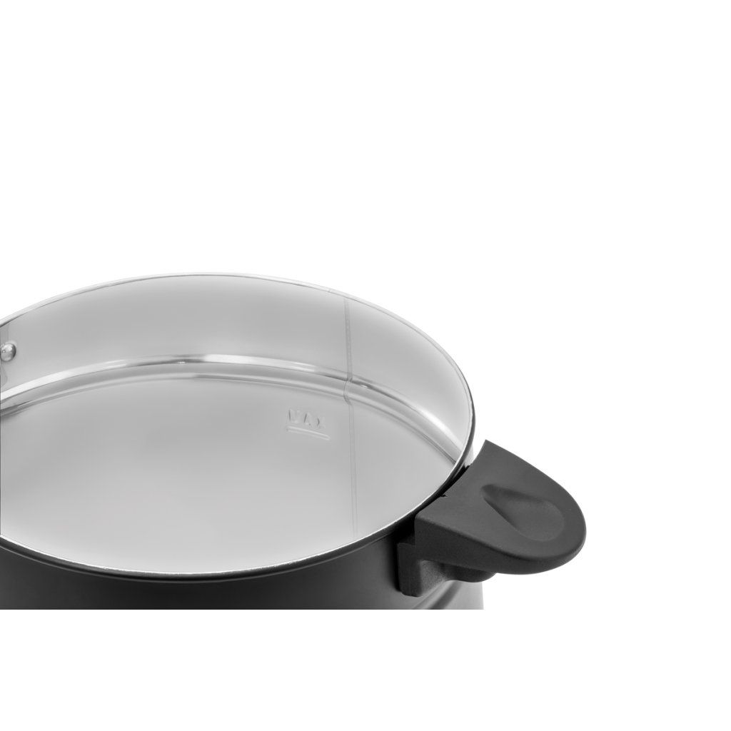 Černý dávkovač horké vody s objemem 5 litrů zaujme vzhledem i praktičností. Plynulá regulace teploty umožňuje vodu dlouhodobě ohřívat a udržovat připravenou k výdeji.