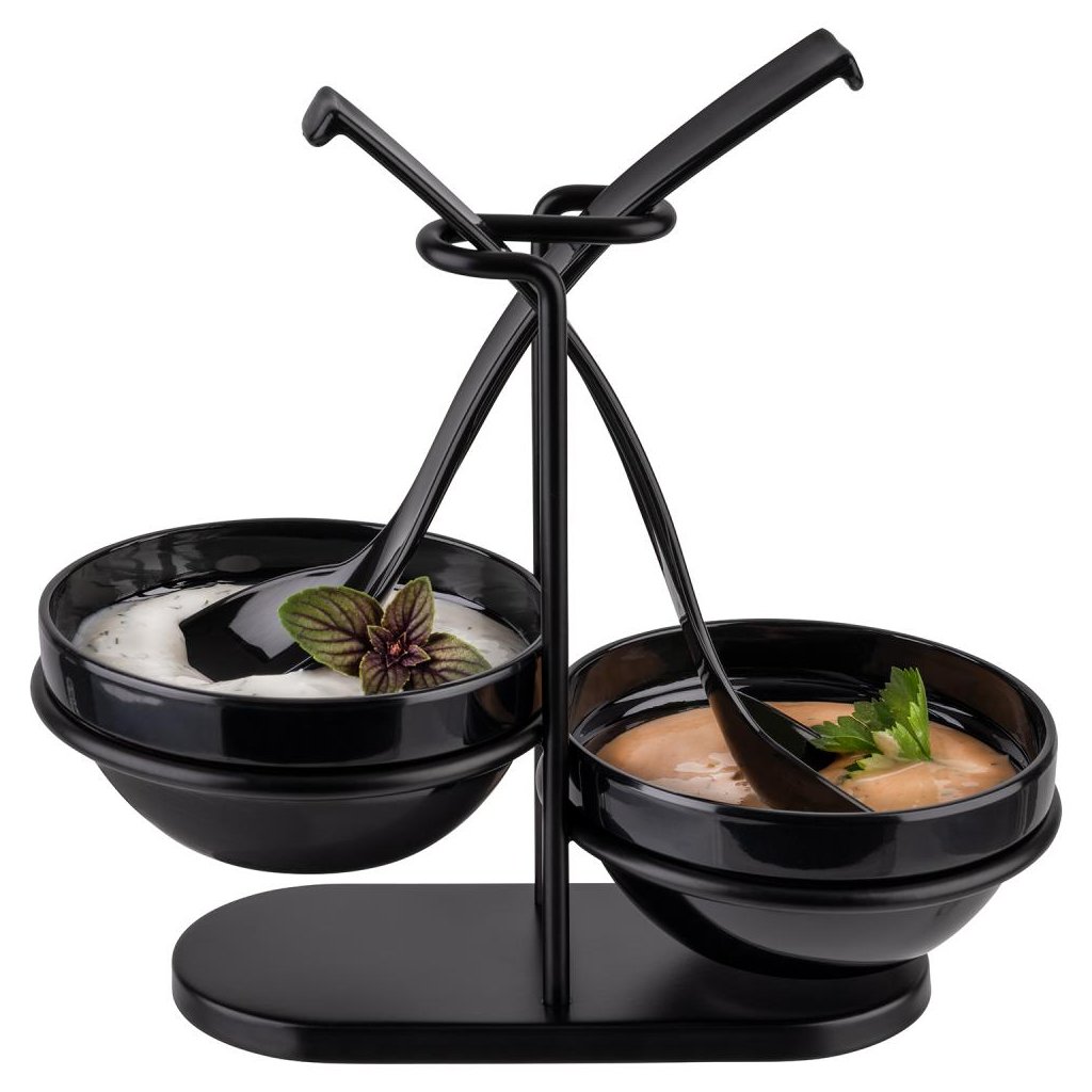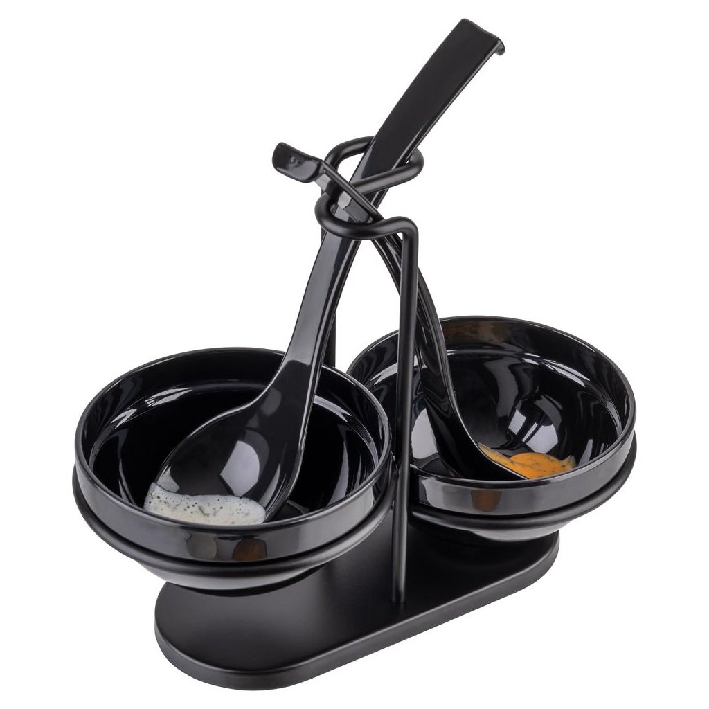 Ideální pro použití v restauracích, cateringu a domácích kuchyních. Stojan na lžíce se dvěma miskami usnadní servírování pokrmů a zajistí estetický vzhled stolu.