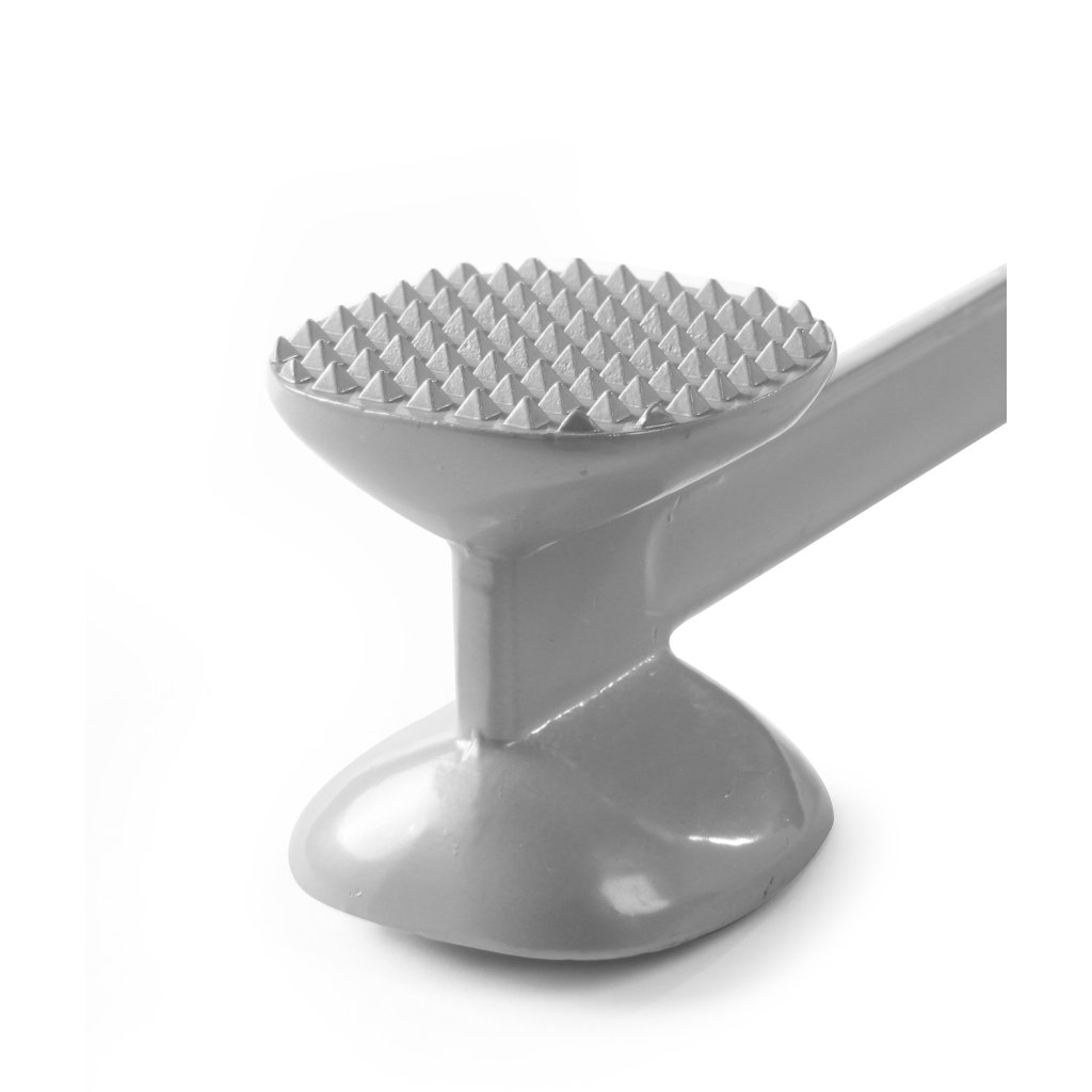 Palička na maso z hliníku. Je astestovaná pro kontakt z potravinami. Piramidový povrch pro naklepávání hověrízo a vepřového masa, Hladký povrch pro naklepávání drůbežího masa a ryb.Nelze mýt v myčce.Doplňkové parametry