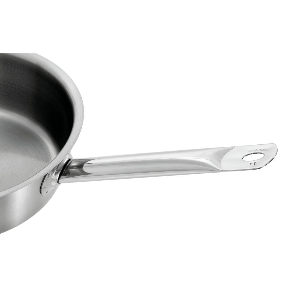 Nerezová pánev s dodávanou poklicí je všestranným pomocníkem do každé kuchyně. Skvěle se hodí pro smažení, restování i ohřívání a nabízí spolehlivé použití na různých typech sporáků.