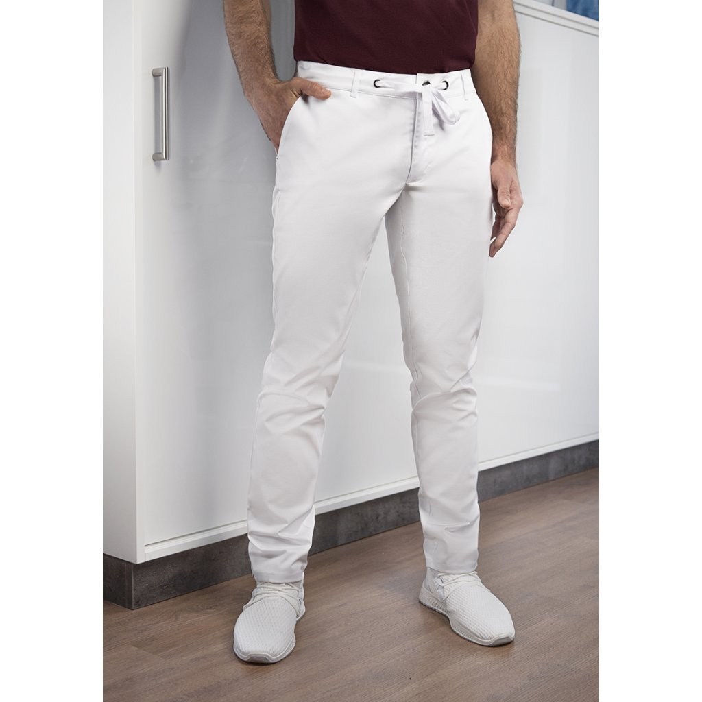 | keprová vazba, 59 % bavlna / 39 % polyester / 2 % elastan, 206 g/m² | snadná údržba, pružné | snadná údržba, pružné | ležérní pracovní kalhoty pro muže z lehké strečové tkaniny pro výjimečnou volnost pohybu | přiléhavý střih | kombinuje moderní design chino kalhot s pohodlnými prvky joggingových kalhot | všestranné použití v následujících oblastech: kuchyně, servis, úklid, péče, wellness a mnoho dalšího | vysoká odolnost proti oděru a skvrnám | kromě práce také perfektní společník pro každodenní nošení | flexibilní elastický pásek a šňůrka v pase pro pohodlné nošení v oblasti boků | úzký lem | 2 boční kapsy a 2 zadní kapsy s knoflíky | včetně poutka na opasek | odpovídající výrobek: Dámské chino kalhoty - HF 8 (číslo výrobku výrobce)Doplňkové parametry