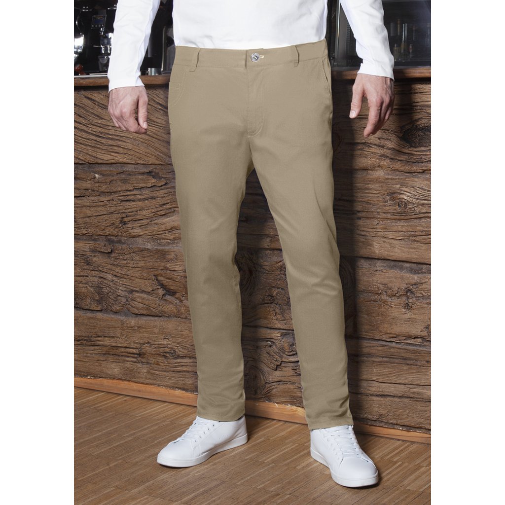 | keprová vazba, 98 % bavlna / 2 % elastan, 230 g/m² | snadná údržba, pružné | | ležérní pánské kalhoty v klasickém stylu s 5 kapsami | vyrobené z lehké strečové tkaniny pro vysokou volnost pohybu | všestranné použití v následujících oblastech: kuchyně, servis, medicína, péče, wellness, kosmetika, úklid a mnoho dalšího | vyvinuto pro vysoké nároky na údržbu (bílé: lze prát na 95 °C / barevné: lze prát na 60 °C) | kromě práce také perfektní společník pro každodenní život | přiléhavý střih s úzkým lemem | 2 přední kapsy, z toho 1 skrytá kapsa na mince | 2 zadní kapsy vzadu | včetně poutka na opasek | vnitřní délka nohavic (s - krátká): 76 cm (pro výšku 163 - 174 cm) | vnitřní délka nohavic (normální): 81 cm (pro výšku 175–186 cm) | vnitřní délka nohavic (l - dlouhé): 86 cm (pro výšku 187 - 197 cm) | odpovídající výrobek: Dámské kalhoty s 5 kapsami - HF 9 (číslo výrobku výrobce)Doplňkové parametry