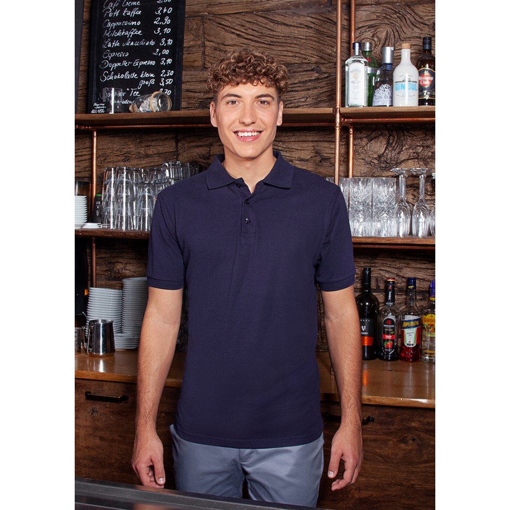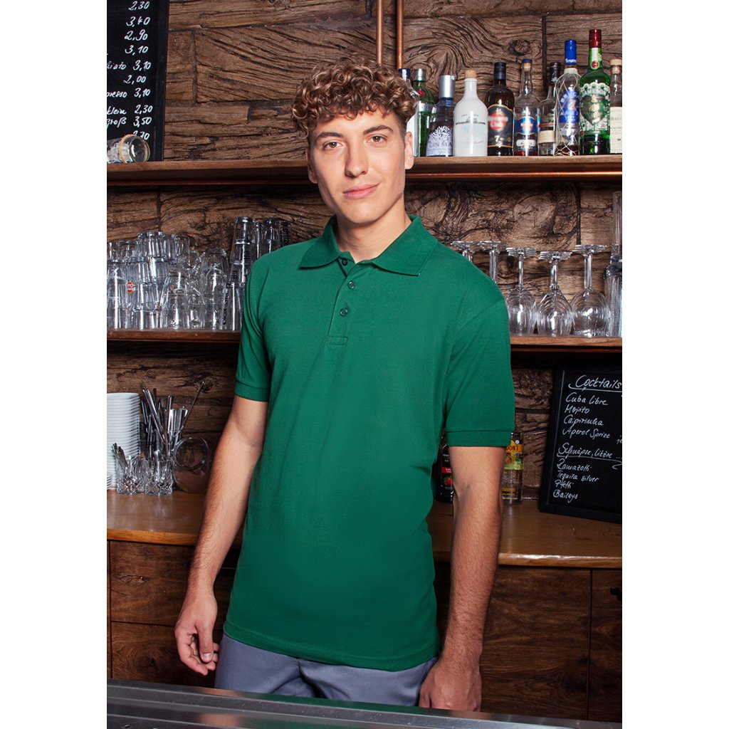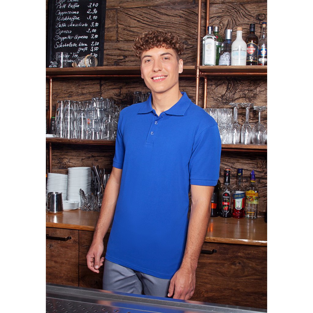| žerzejový piké, 100 % bavlna (česaná, prstencově spředená), 220 g/m² | snadná údržba, předsrážené, tvarově stálé | odolné, klasické polo tričko pro muže | odolné, klasické polo tričko pro muže | univerzální použití v následujících oblastech: kuchyně, servis, úklid, péče, wellness a mnoho dalšího | cool základní kousek, který je ideálním společníkem nejen do práce, ale i pro volný čas | vyvinuto pro vysoké nároky na péči (bílé: lze prát na 95 °C, vhodné do sušičky / barevné: lze prát na 60 °C, vhodné do sušičky) | rovný střih zaručuje optimální volnost pohybu | pletený polo límec s páskou na krku | pletené manžety rukávů | dvojité švy | 3 tón v tónu knoflíky | boční rozparky na spodním lemu | odpovídající výrobek: Dámské pracovní polo tričko - BPF 3 (číslo výrobku)Doplňkové parametry