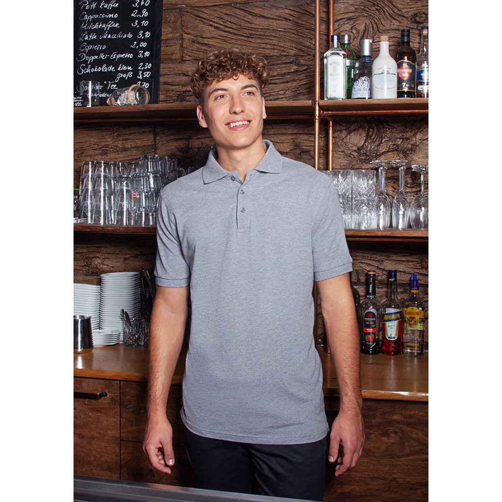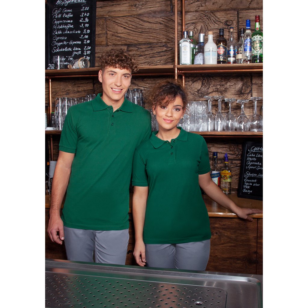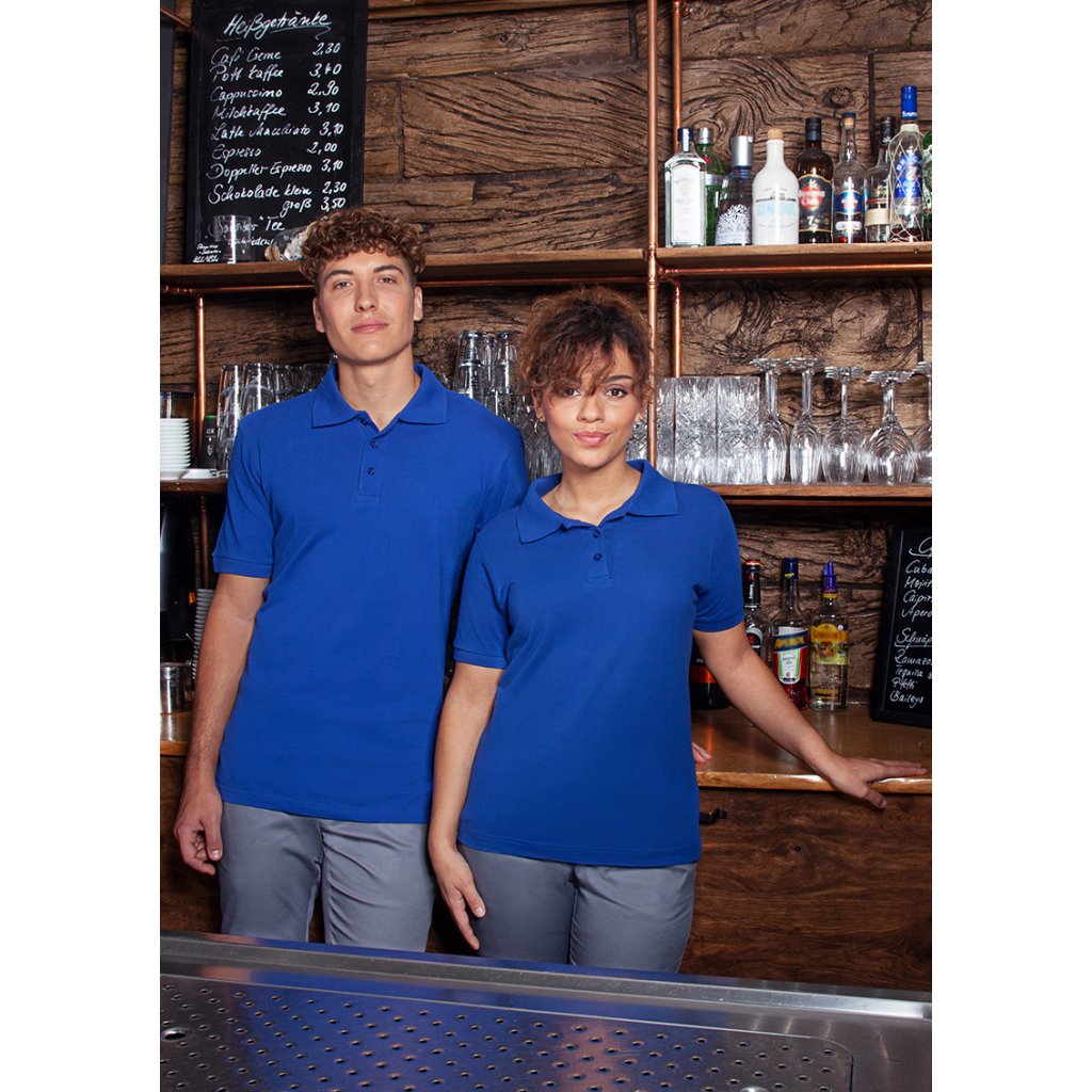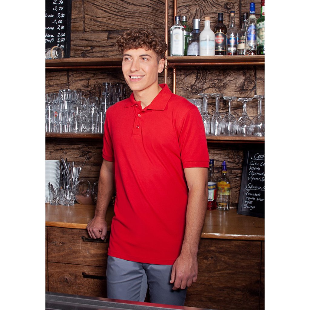 | žerzejový piké, 100 % bavlna (česaná, prstencově spředená), 220 g/m² | snadná údržba, předsrážené, tvarově stálé | odolné, klasické polo tričko pro muže | odolné, klasické polo tričko pro muže | univerzální použití v následujících oblastech: kuchyně, servis, úklid, péče, wellness a mnoho dalšího | cool základní kousek, který je ideálním společníkem nejen do práce, ale i pro volný čas | vyvinuto pro vysoké nároky na péči (bílé: lze prát na 95 °C, vhodné do sušičky / barevné: lze prát na 60 °C, vhodné do sušičky) | rovný střih zaručuje optimální volnost pohybu | pletený polo límec s páskou na krku | pletené manžety rukávů | dvojité švy | 3 tón v tónu knoflíky | boční rozparky na spodním lemu | odpovídající výrobek: Dámské pracovní polo tričko - BPF 3 (číslo výrobku)Doplňkové parametry