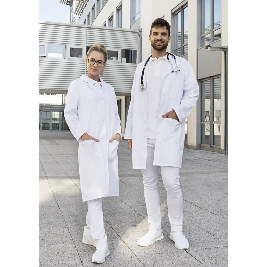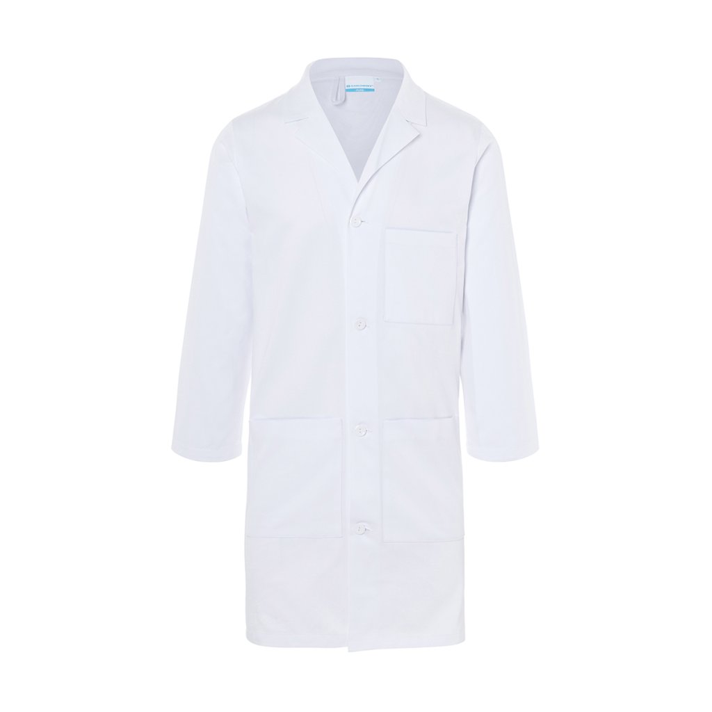 | keprová tkanina, 100 % bavlna, 185 g/m² | klasický lékařský a laboratorní plášť pro muže volného střihu | pohodlný střih zajišťuje dostatek volnosti pohybu při každodenní práci | lze prát na 60 °C, aby se odstranily odolné skvrny | s klopovým límcem | 2 našité kapsy na bocích (17 x 20 cm) a 1 našitá kapsa na levé straně (13 x 15 cm) | otevřená knoflíková léga se 4 tónovými knoflíky | odpovídající výrobek: Dámský lékařský a laboratorní plášť – BMF 1 (číslo výrobku)Doplňkové parametry