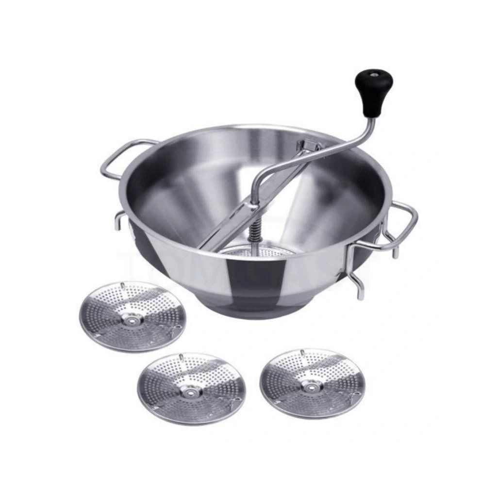 Profesionální pasírka se třemi vyměnitelnými disky.Pasírka Jumbo na hrnec 26 cm