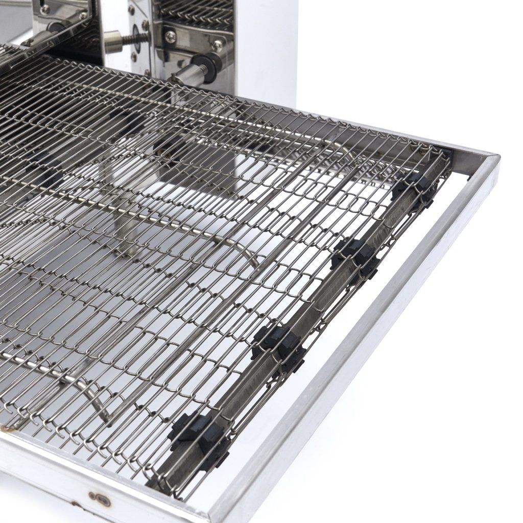 Tato robustní pec je vybavena dopravníkovým pásem a je ideální pro profesionální použití a vysokou produkci pizzy. Čerstvou pizzu jednoduše položíte na pásový dopravník, který zajišťuje její pohyb směrem k peci. Uvnitř pece se pizzy rovnoměrně opečou ze všech stran a vyjedou na druhé straně. Kromě pizzy můžete v této kvalitní peci na pizzu připravovat také flammkuchen.