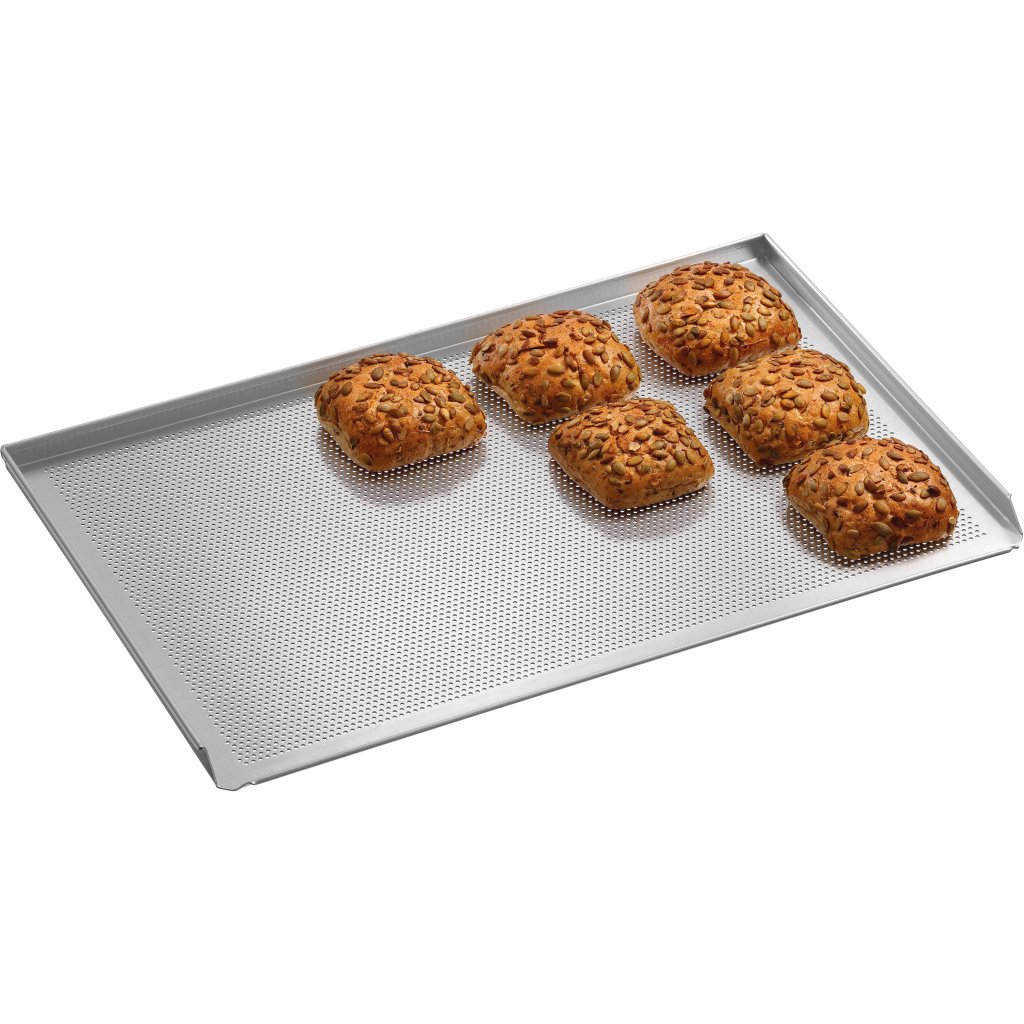 Perforovaný hliníkový plech na pečení o rozměrech 600x400 je tepelně odolný až do 260 °C. Třístranný okraj zajišťuje bezpečné pečení a přepravu.Doplňkové parametry