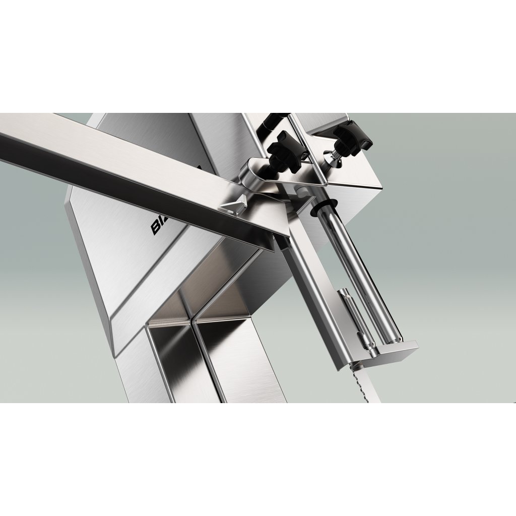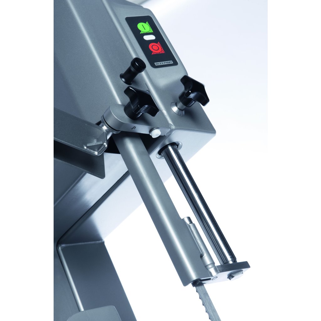 Výkonný stroj pro rozbourání a porcování čerstvého masa s kostí i bez kosti, řezání dutých kostí, drůbeže a mražených ryb. Hladké tělo z jednoho odlitku bez nýtů.‑ Rychlost pilového pásu: cca 17 m/s‑ Délka pilového pásu: 1760 mm‑ Výška řezu: 250 mm‑ Tloušťka řezu: 10–190 mm‑ Systém napínání a uvolnění pilového pásu, nádoba na odpad, pracovní stůl se stupnicí, hnací kotouče pilového pásu z nerezové oceli‑ 2 pilové pásy v rozsahu dodávky‑ Volitelně: zvětšený pracovní stůl‑ Krytí: IP 55‑ Napětí: 230 V / 50 HzDoplňkové parametry