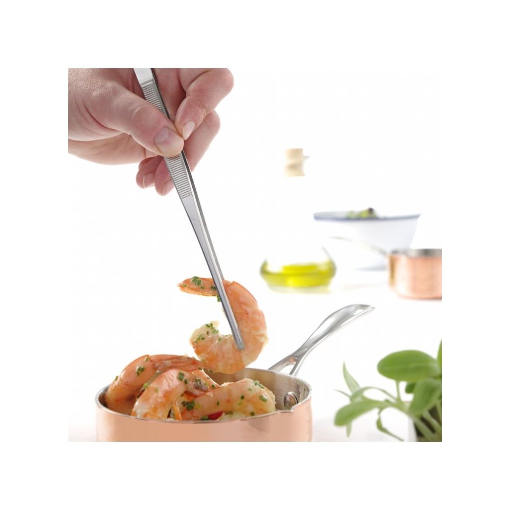 Univerzální pinzeta vyrobená z nerezové oceli. Určená na příklad pro dekoraci potravin, filetování nebo obrácení během smažení. Vhodná do myčky.Doplňkové parametry