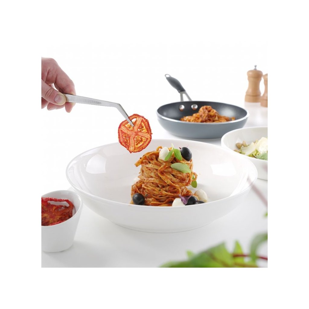 Univerzální pinzeta je vyrobená z nerezové oceli. Určena na příklad pro dekoraci potravin, filetování nebo obrácení během smažení. Vhodná do myčky nádobí.Doplňkové parametry