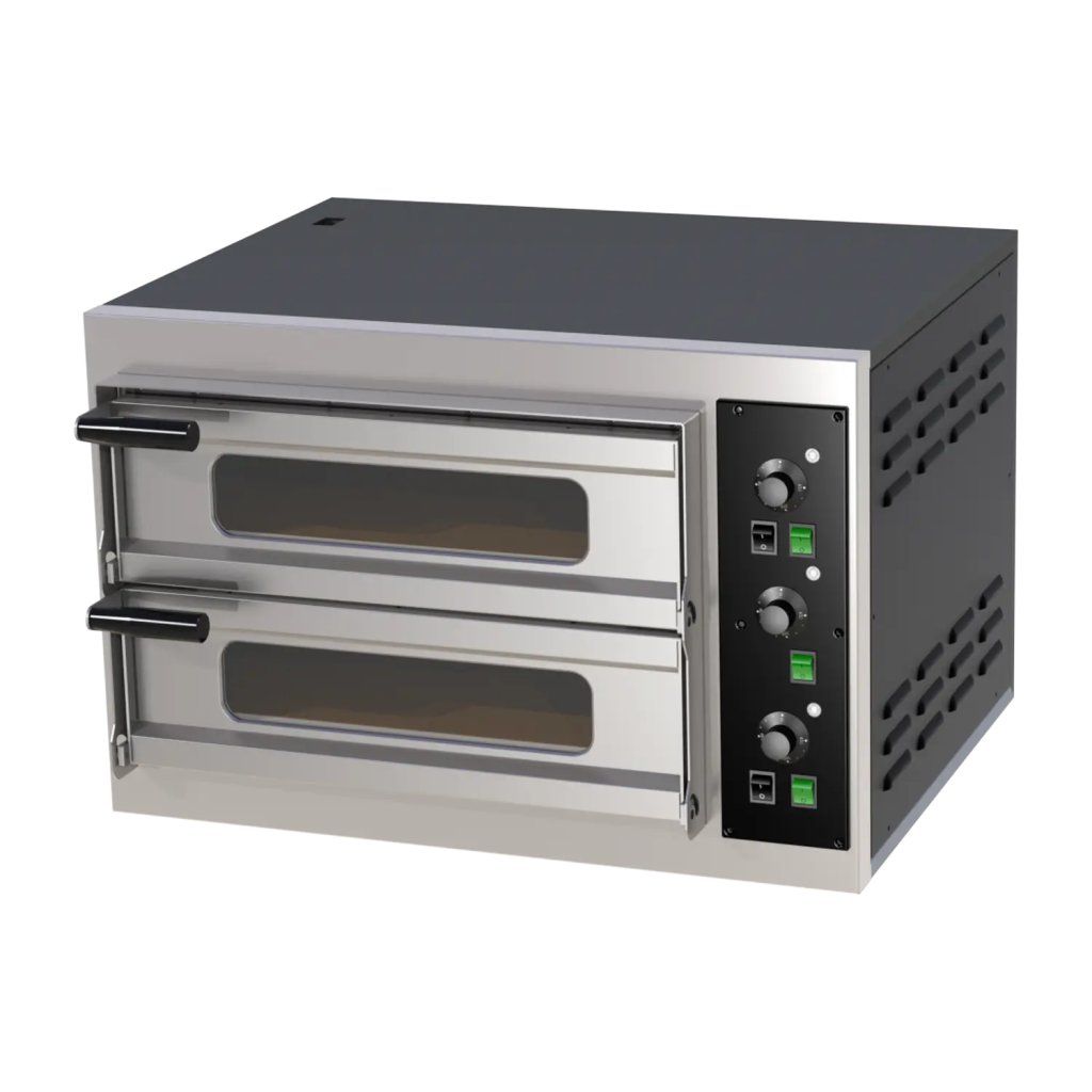 Sap kód: 00019403; Šířka netto [mm]: 775; Hloubka netto [mm]: 716; Výška netto [mm]: 582; Hmotnost netto [kg]: 51.00; Šířka brutto [mm]: 880; Hloubka brutto [mm]: 750; Výška brutto [mm]: 650; Hmotnost brutto [kg]: 60.00; Typ spotřebiče: Elektrické zařízení; Příkon elektrický [kW]: 6.000; Napájení: 400 V / 3N - 50 Hz; Typ ovládání: Mechanické; Šířka vnitřní části zařízení [mm]: 520; Hloubka vnitřní části zařízení [mm]: 540; Výška vnitřní části zařízení [mm]: 150; Minimální teplota zařízení [°C]: 50; Maximální teplota zařízení [°C]: 450; Kapacita pizz [cm]: 2x 50; Kontrolky: chodu a nahřátí; Tlačítko on/off: Ano; Typ madla: krátké, plastové; Šamotové desky: Spodní; Tloušťka šamotových desek [mm]: 14; Nezávislé topné zóny: Samostatné ovládání pro horní a spodní topná tělesa; Vnitřní osvětlení: Ano; Počet komor: 2; Komínek pro odtah vlhkosti: Ano; Průřez vodičů CU [mm²]: 1;Doplňkové parametry