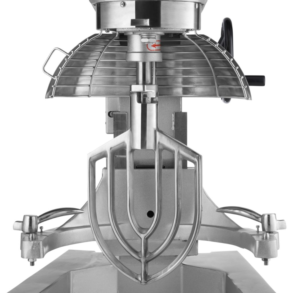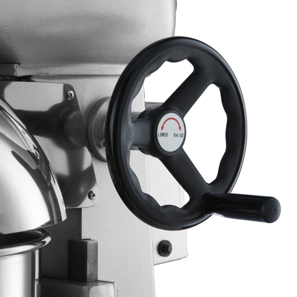 V kuchyních, kde se zpracovává velké množství těsta a těstovin, jako jsou restaurace, pekárny, podnikové jídelny a školní kuchyně, je tento výkonný planetární mixér přesně to, co potřebujete. Robustní míchací mísa z nerezové oceli snadno uhněte 20 kg těsta na pizzu. Díky výkonnému motoru a kovovým převodům se velké množství těsta bez námahy promíchá pomocí háku na těsto. Kromě těsta na pizzu zvládne planetární mixér také až 16 kg chlebového těsta. Minimální množství chlebového těsta, které lze hníst, je 5 kg. Díky páce na boku můžete naplněnou míchací mísu po hnětení snadno spustit.