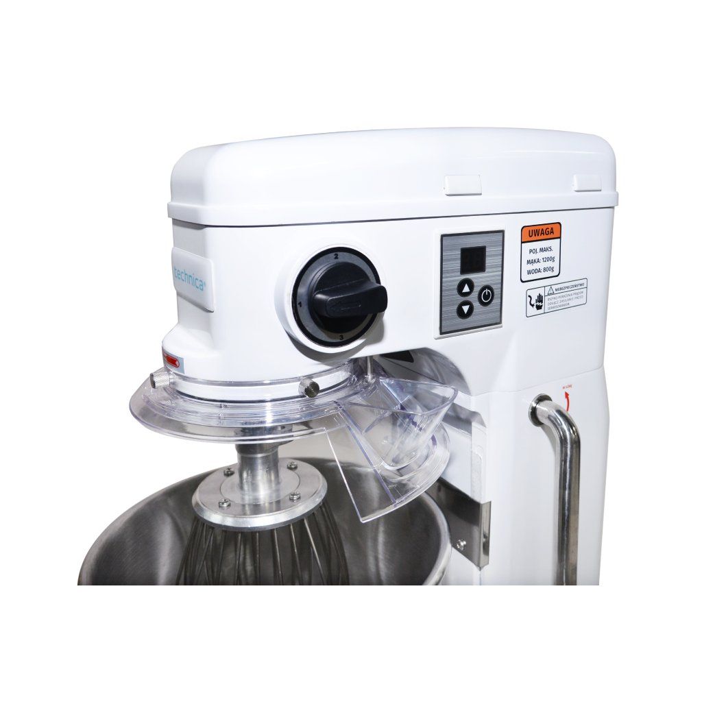 Vysoce kvalitní planetární mixér vyrobený z robustních komponentů. Nastavitelný stroj. Má bezpečnostní prvky pro bezpečný provoz: ochranný kryt, bezpečnostní spínač a ochranu proti přetížení. Digitálně řízený časovač. Miska se spouští a zvedá pomocí páky. Maximální kapacita mouky je 2 kg. Sada obsahuje potřebné nástroje: nerezovou mísu, hnětací tyč, míchadlo a hák na těsto. Možnost nastavení 3 rychlostí: 128/252/545 otáček za minutu.