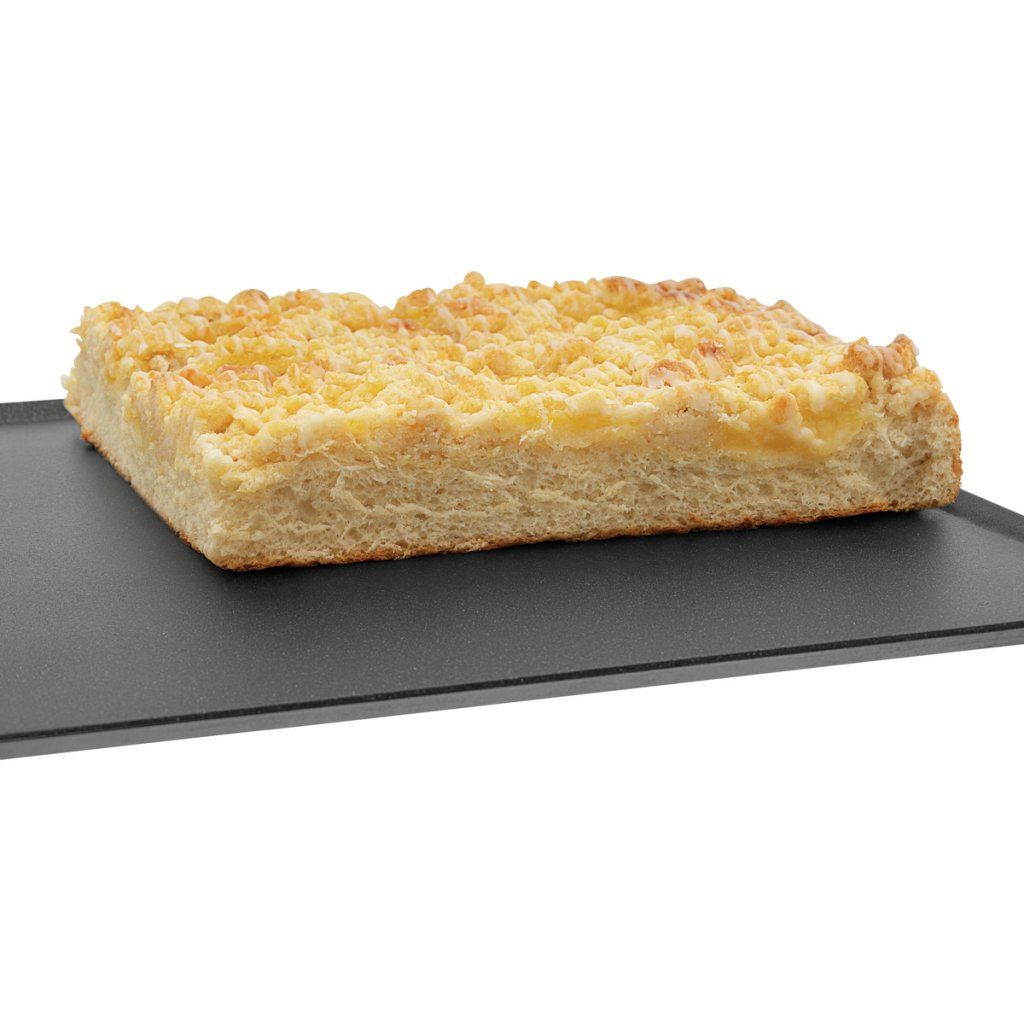 Plech z potaženého hliníku ve formátu 600 × 400 mm odpovídá pekařské normě. Inovativní a odolný nepřilnavý povrch pomáhá zabránit přichytávání pečiva a usnadňuje práci v provozu.