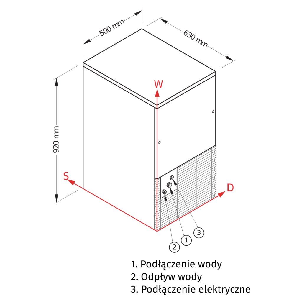Plná kostka ledu 44 kg/24 h, objem zásobníku 12 kg, vodní chlazení, 0,45 kW, 500x630x920 mm | NTF, D 90 W