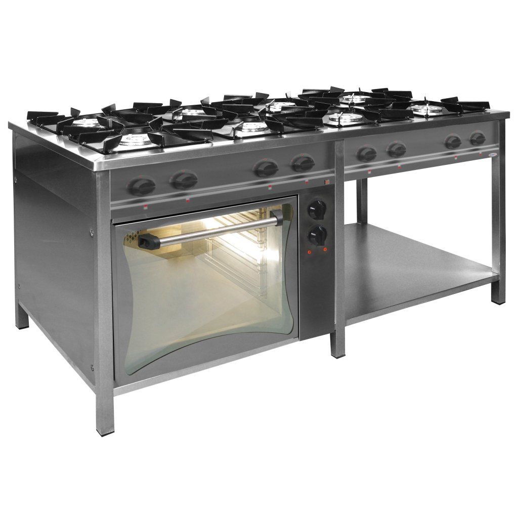 Plynový gastronomický sporák 8-hořákový s elektrickou troubou a policí, 1700x700x850 mm, 44,6 kW | EGAZ, TG-8740/PKE-1