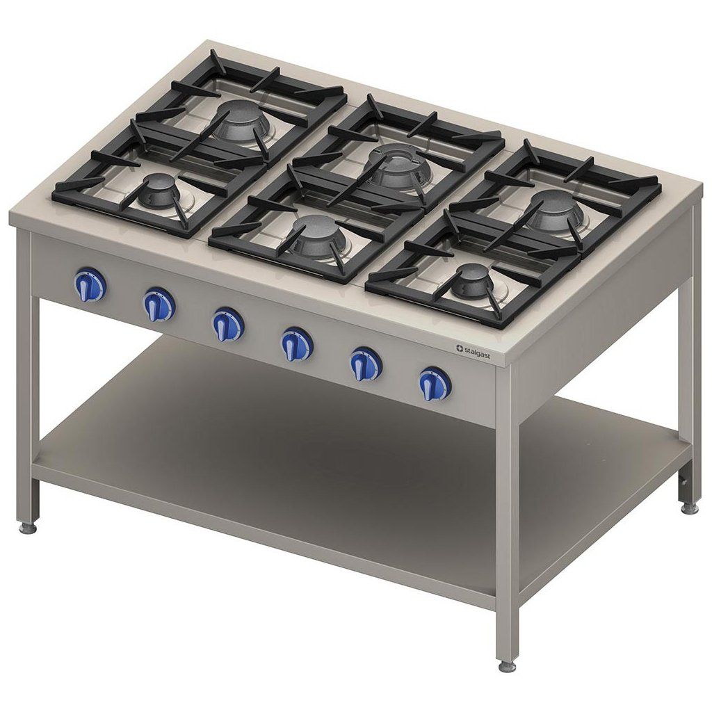 Plynový sporák 6 hořákový s policí 36,5 kW – propan-butan | STALGAST, 999623