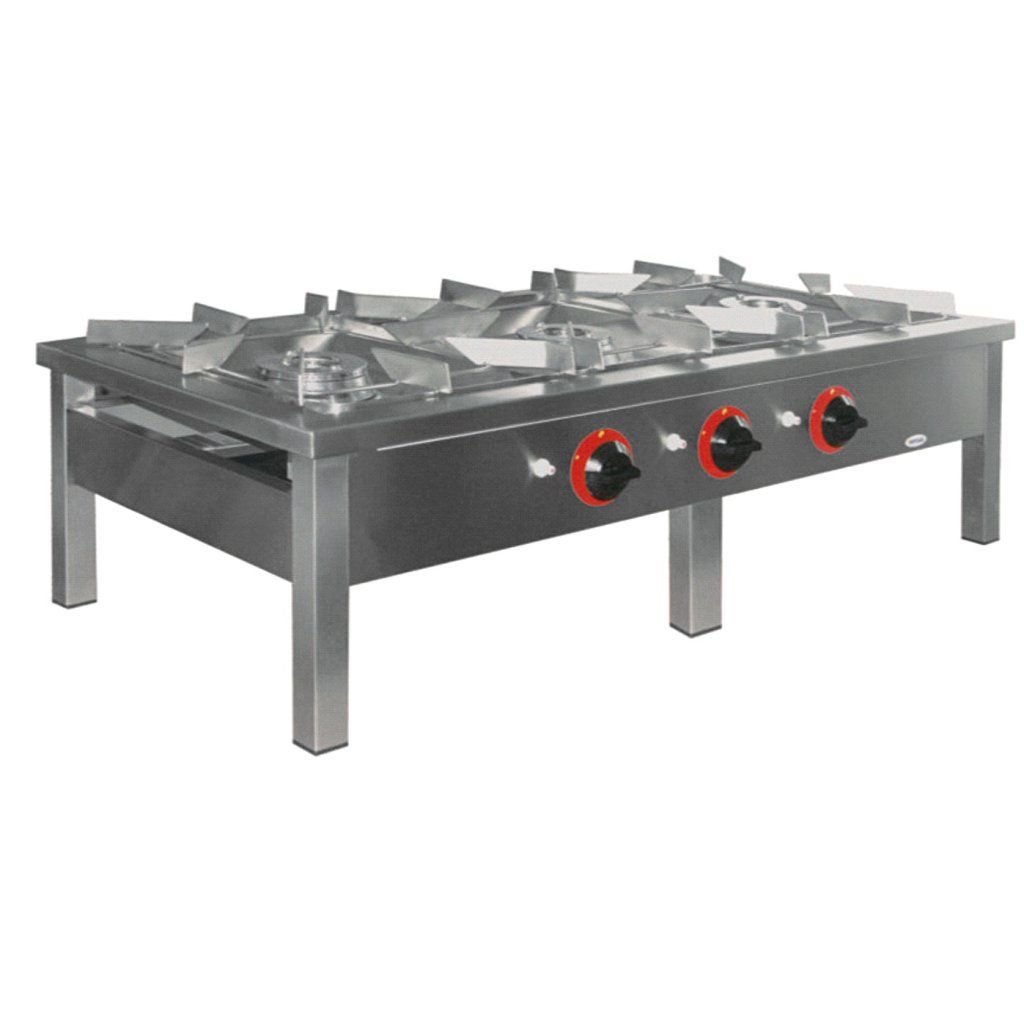 Vlastnosti spotřebiče: hořáky mají dva ohnivé kruhy (dvoukorunkové hořáky), kterérovnoměrný ohřev dna pánve zvyšuje efektivitu využití plynu, hořáky o výkonu 5,0, 7,0 nebo 9,0 kW lze použít podle potřeby, ventily s ochranou proti vypouštění plynu přerušují přívod plynu v případě zhasnutí plamene, možnost nastavení tzv. úsporného plamene pomocí kohoutu, piezoelektrické zapalovače, odnímatelné spodní desky hořáků usnadňují údržbu zařízení, smaltované rošty, trubková 1/2" plynová přípojka, použití nožiček. "Smaltované rošty, 1/2" trubkové připojení plynu, výškově nastavitelné nožičky, vhodné pro zemní plyn G 20 (dříve GZ-50) a zkapalněný plyn G 30 (propan nebo propan-butan PB). Stoličky jsou vyrobeny z kyselinovzdorné nerezové oceli třídy AISI 304.