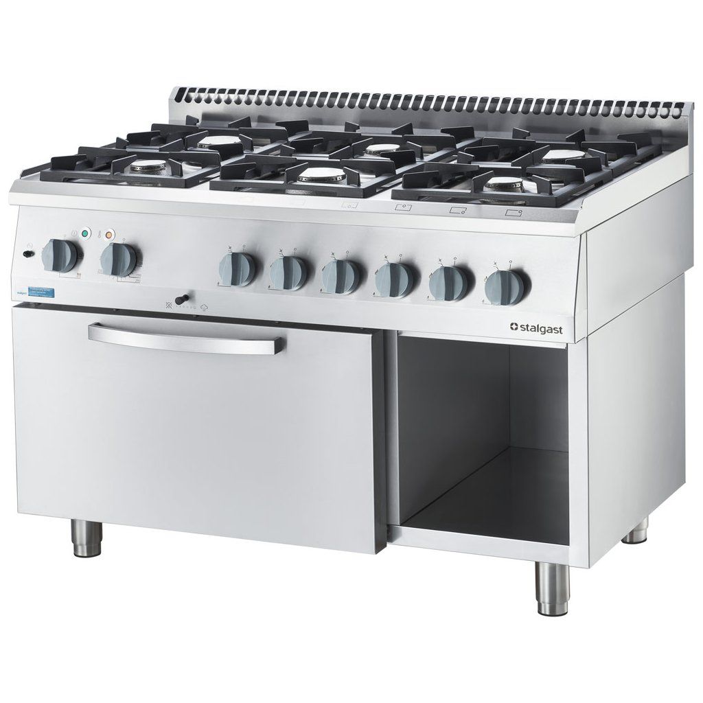 Plynový sporák se 6 hořáky a elektrickou troubou 27,5 kW - G20 (zemní plyn), 1200x700x850 mm | STALGAST, Line 700