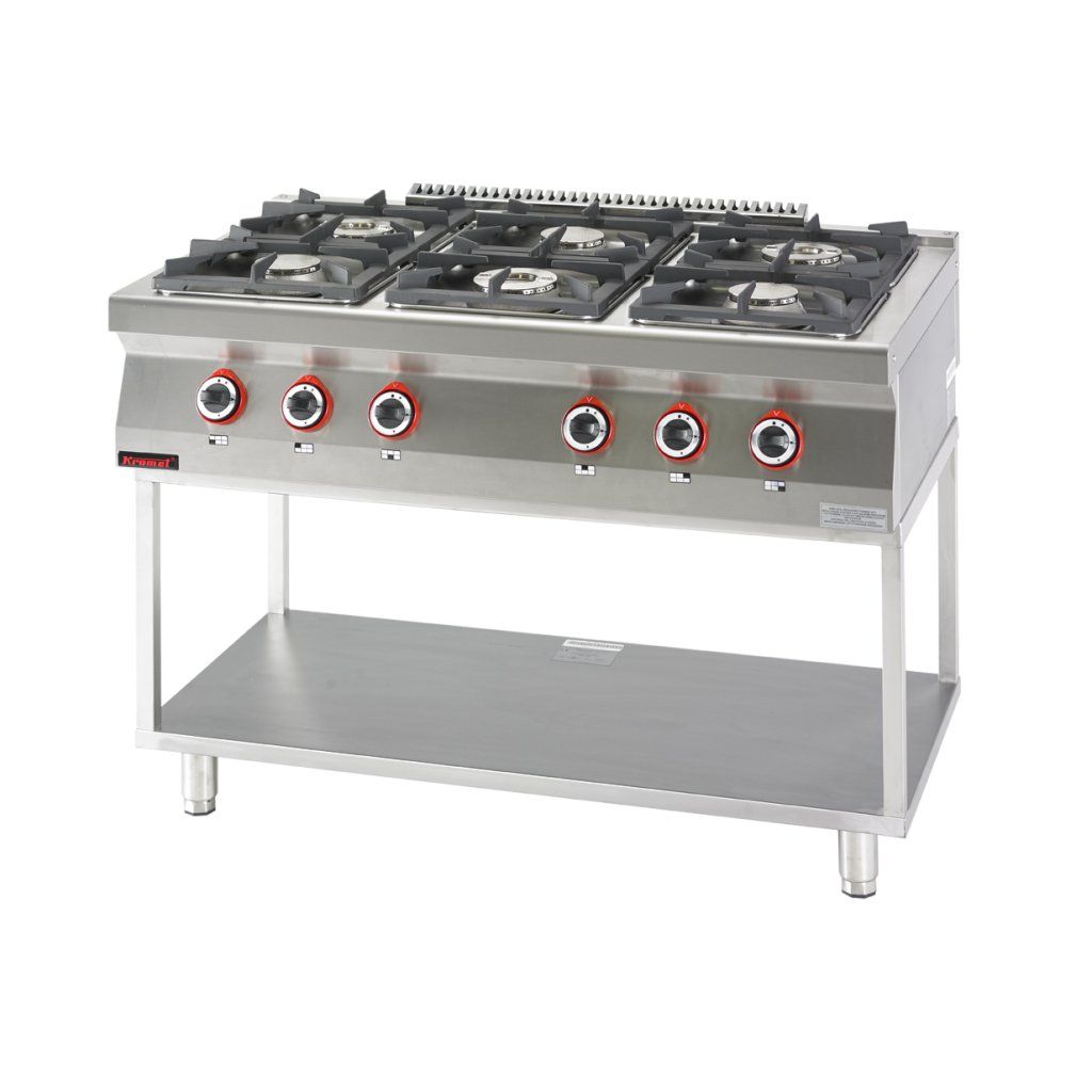 Plynový sporák se 6 hořáky na rámovém podstavci, 1200x700x900 mm | KROMET, 700.KG-6.T