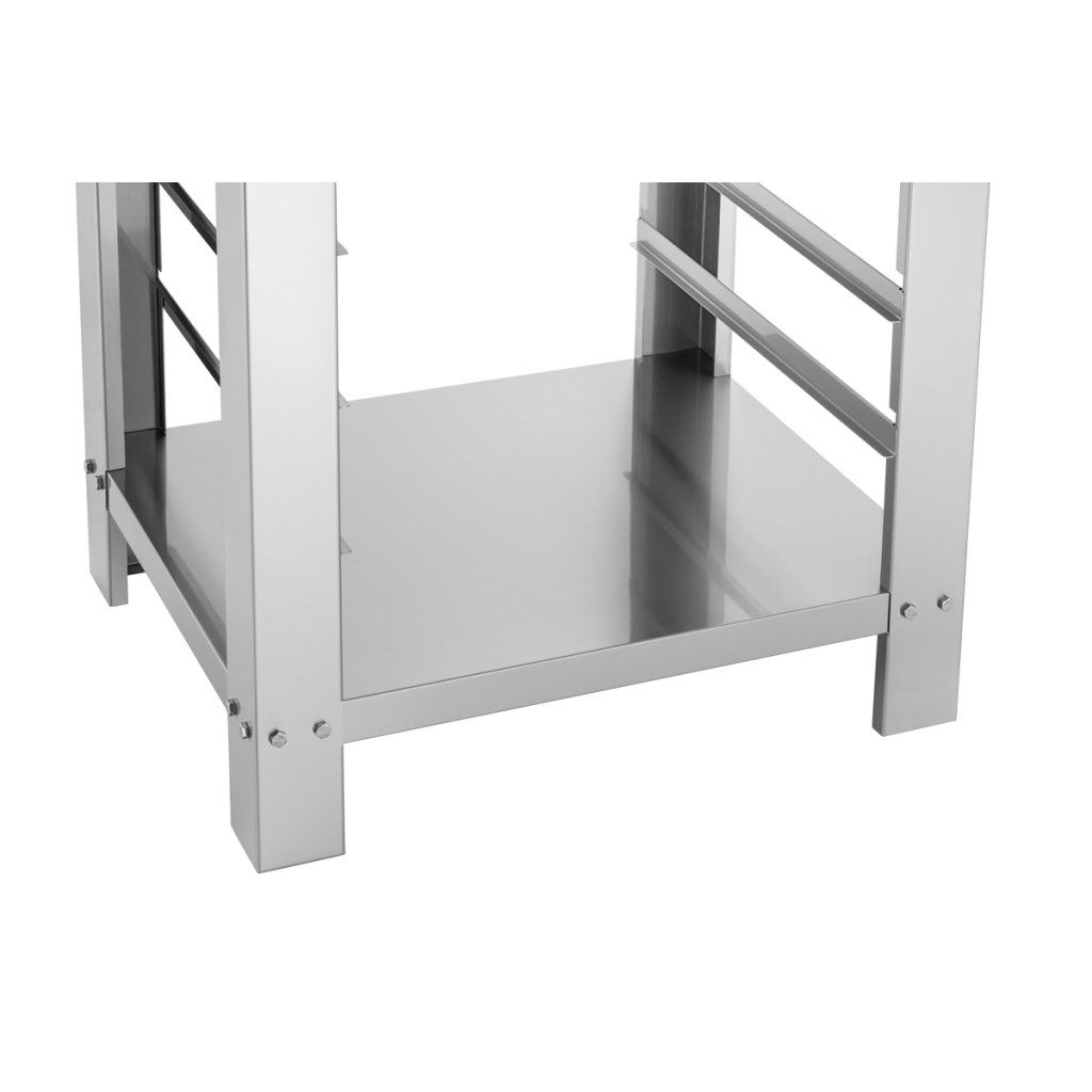 Vyšší komfort při každodenním provozu: podstavec navržený pro horkovzdušné pece AT211-MDI, AT220-MDI a AT230-MDI umožňuje umístit zařízení do ideální pracovní výšky. Čtyři zásuvky navíc poskytují dostatek prostoru pro uložení plechů a nádob ve formátu 1/1 GN.