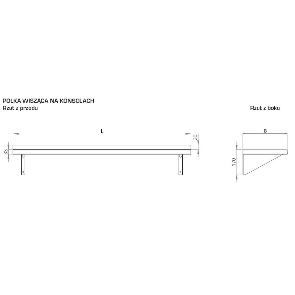Police závěsná na konzolích 1400x300x170 mm vyrobená z kvalitní nerezové oceli. Police svařovaná.Doplňkové parametry